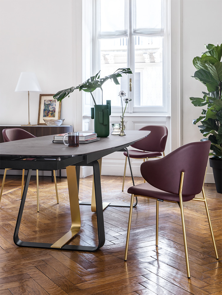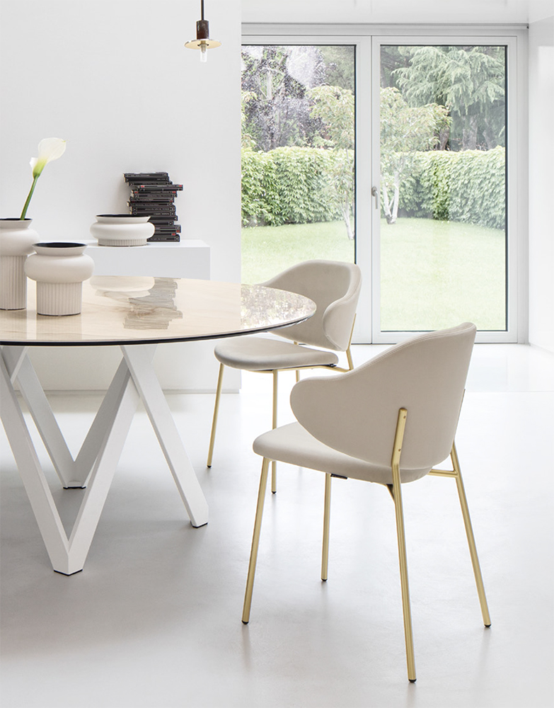 Calligaris `50s-style offering continues with the new Holly family: this chair features a haute-design chiselled metal frame.