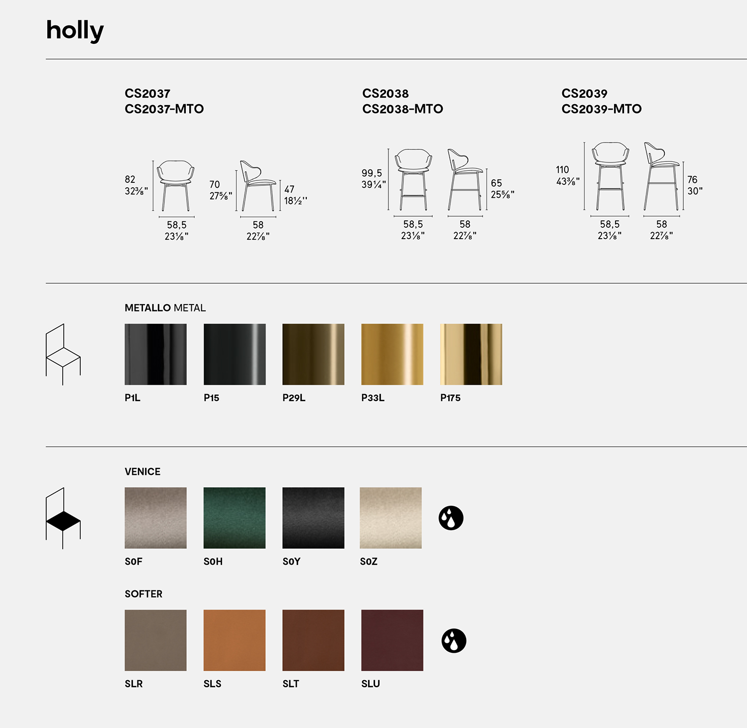 Holly stands apart for its enveloping padded backrest with generous dimensions that allows you to rest your arms comfortably.