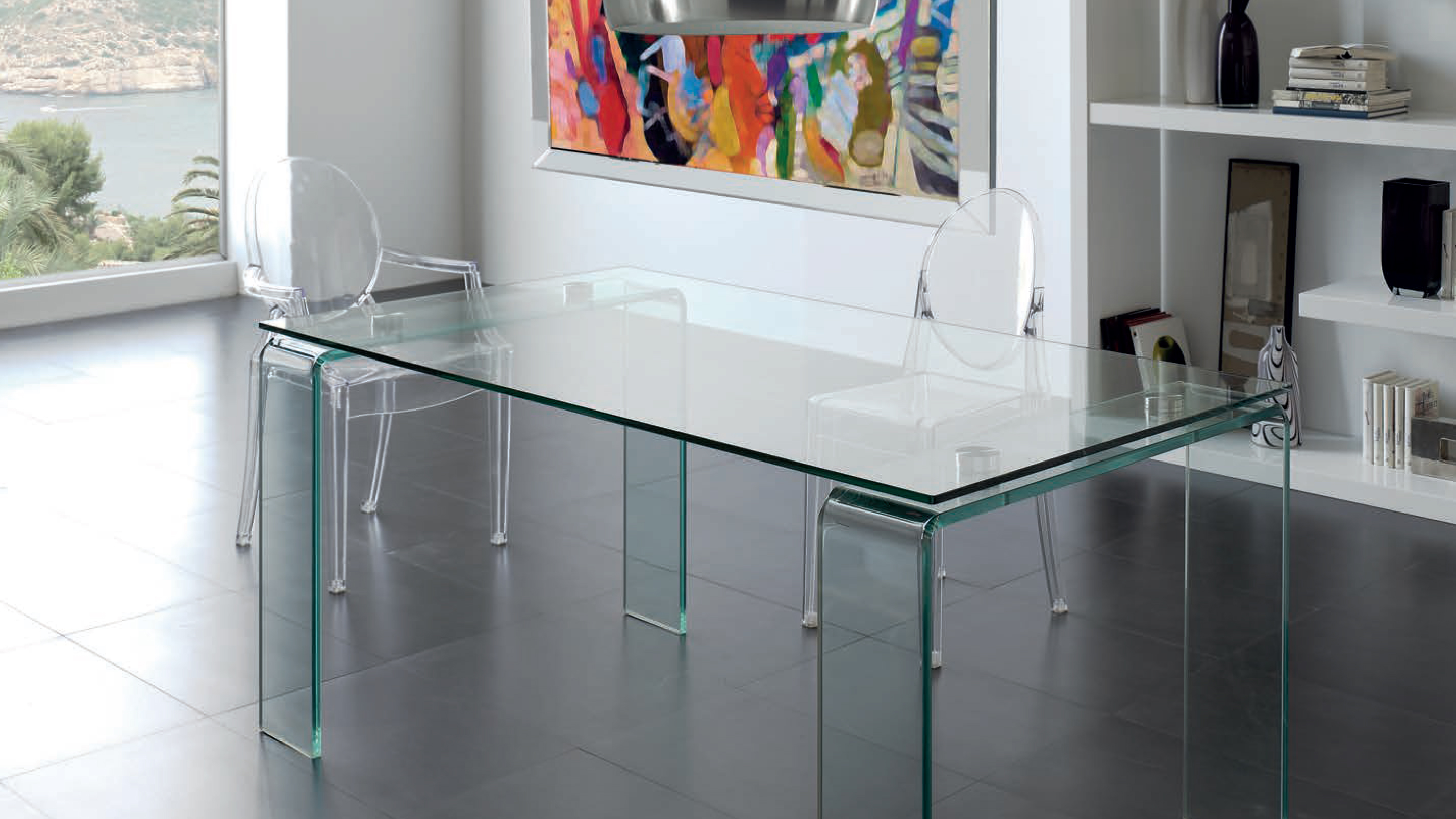 Glass Dining table, 12 mm tempered clear glass. Packed in wood crate.