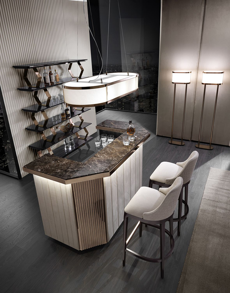 Chair with quilted back. The base is made of stainless steel. The height of the chair can be adjusted.
