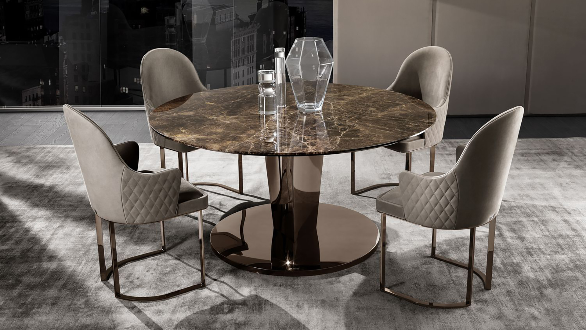 A table with a Stanley marble base can be made in two versions - with a round or rectangular top. The tabletop is made of marble or natural wood, while the pattern on the surface will remain original and unique. Depending on the modification, the table can be made on one or two supports. Various finishes are available.