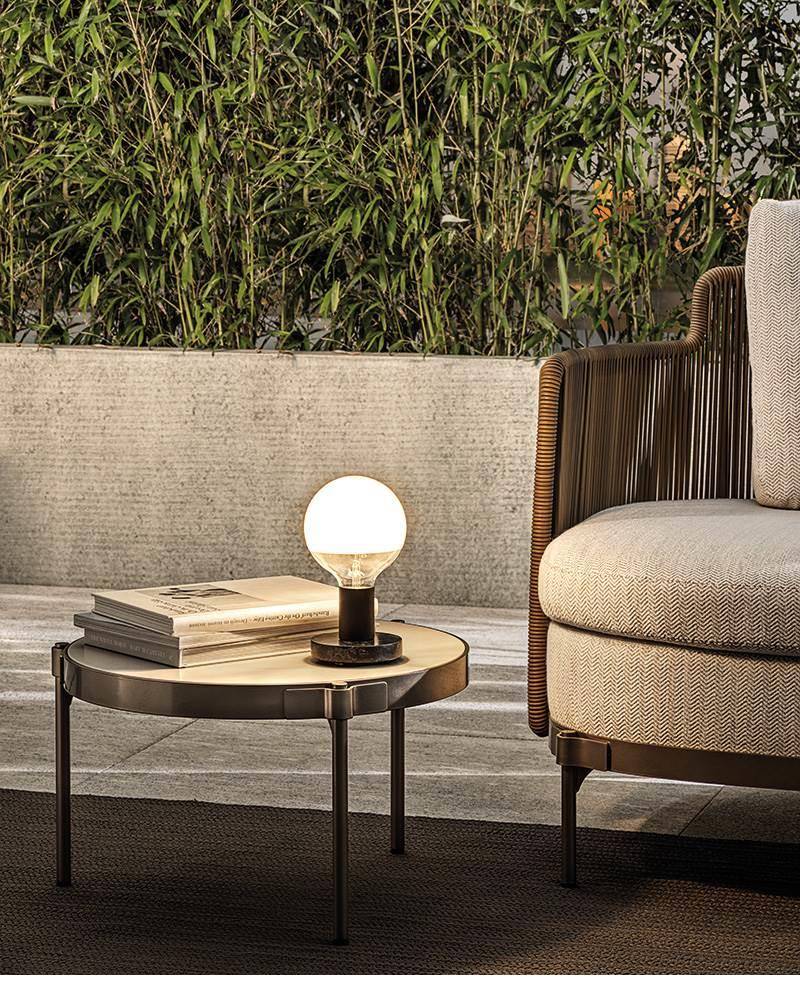 Here, the couture detail of Tape - the piece of ribbon that holds the feet on to the body - takes the form of a metal plate in Bronze colour, a finish that is the leitmotiv of all the outdoor seats of the 2019 Collection.
