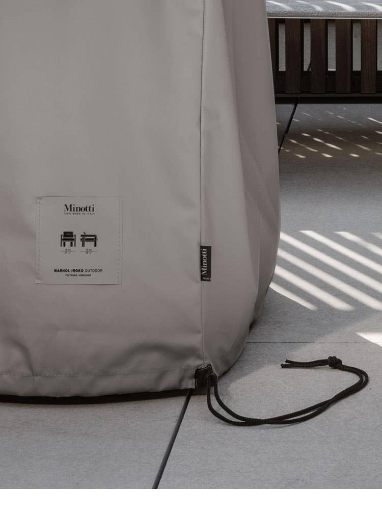 The base of the Warhol “Dark Brown” Outdoor armchair, like that on the Alison ”Dark Brown” Outdoor, rests on anodized aluminum blocks perfectly matched to the color of the wood. This device makes it possible to avoid direct contact of the wood with the ground, thus preventing it from absorbing moisture.