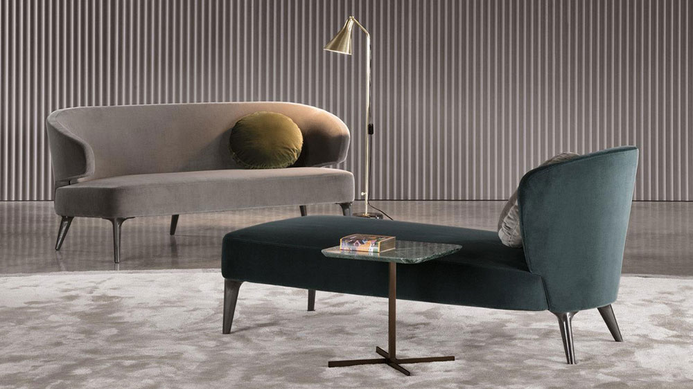 Inspiration for the sofa, ottoman and Aston daybed is unabashedly retro; what they have in common are eloquent lines, a more conservative scale and the kind of painstaking construction that expresses time-tested artisan craftsmanship.