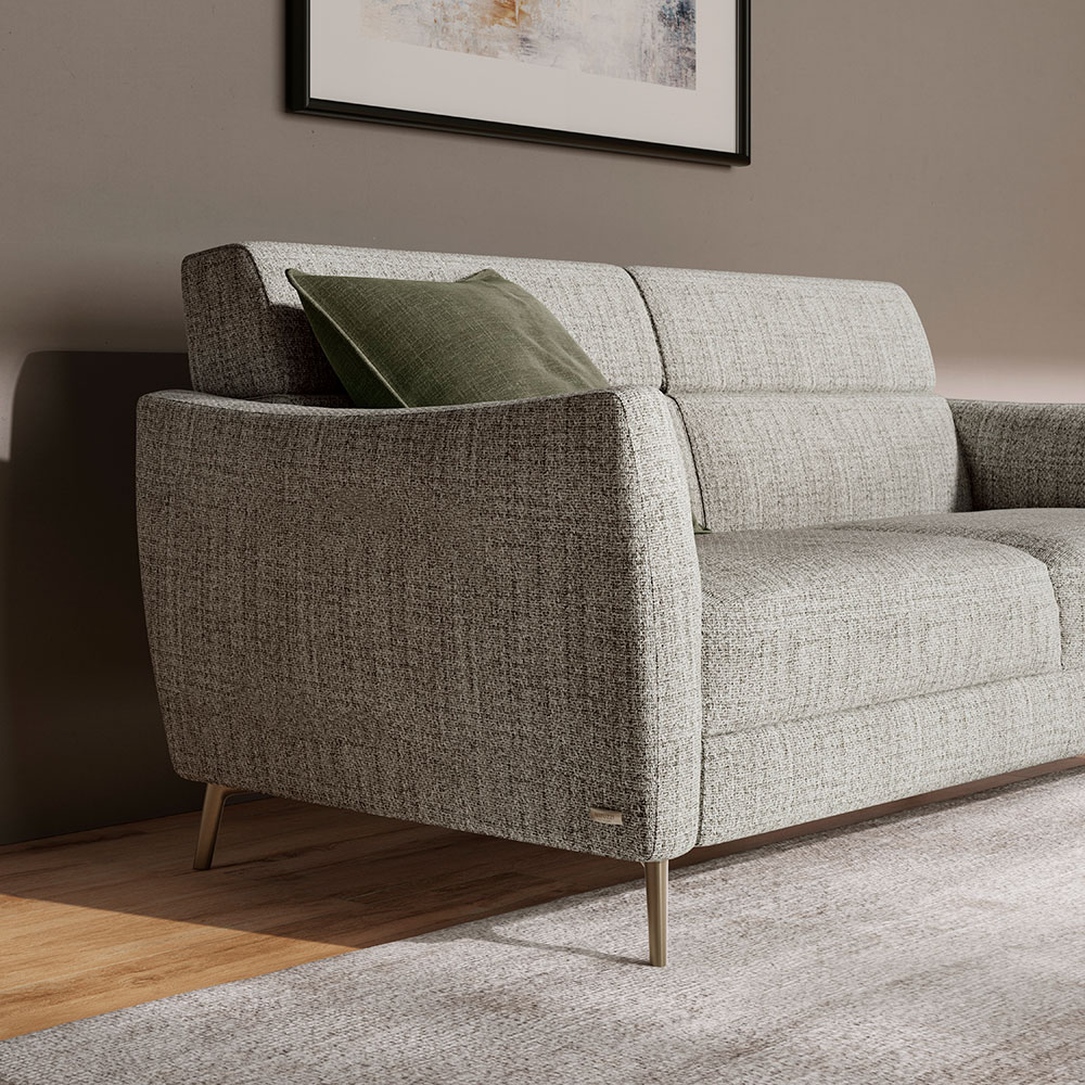 An imposing sofa that immediately strikes for its linear but decisive structure and for its square shapes, perfect for any space and furnishing style. The slim metal foot offers the sofa lightness and personality, an important detail that slims out the structure of this model.