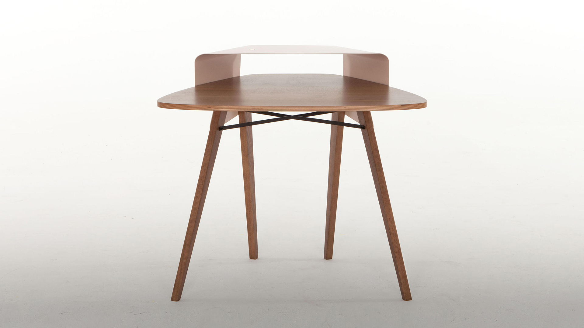 Nipper is the ideal combination of metal and wood: the latter\'s warmth characterizes both the legs and the top, but its presence is interrupted by a metal part - an extremely light and contemporary line that gives this writing desk a touch of elegance and novelty. The marriage of practicality and beauty.