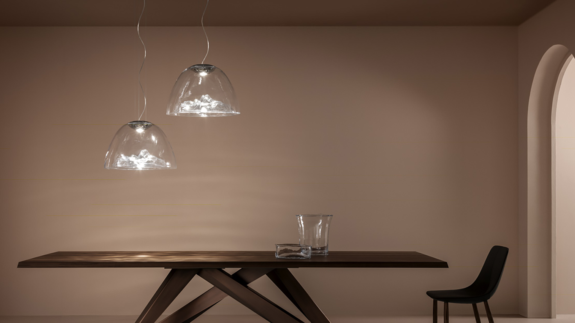 Made of transparent blown glass hand-crafted by a master artisan, Mountain View has a precious and refined personality.