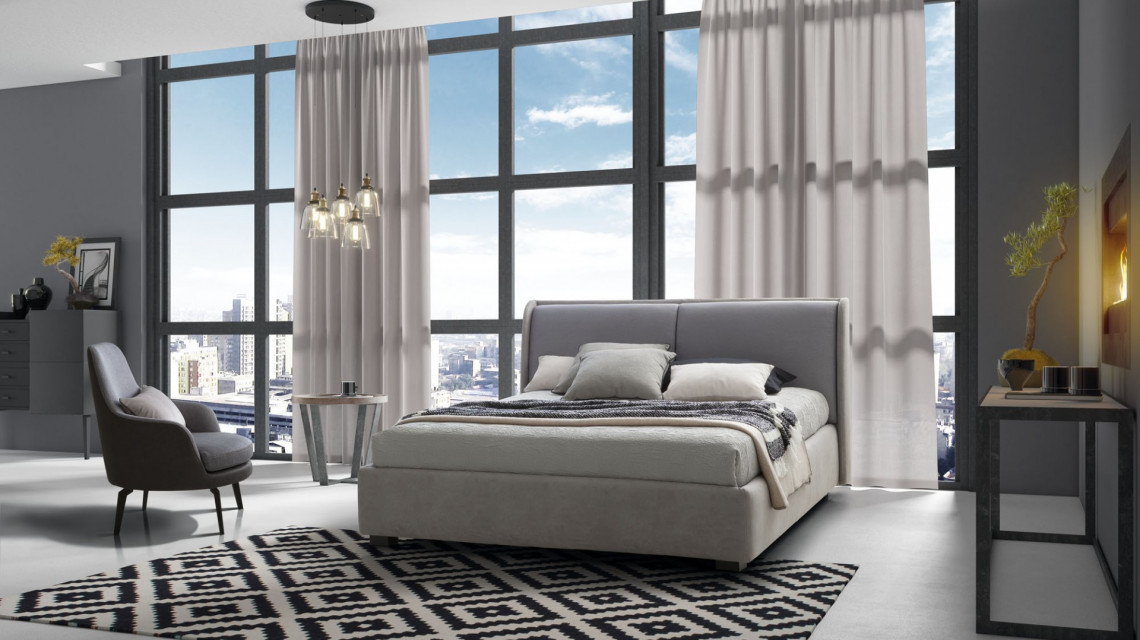 In line with the savvy inventiveness that is typical of the most innovative industrial style, Windsor interprets with originality the traditional outlook of the headboard. In fact, the latter wraps the platform at its base, and serves as an elegant and solid shell, provided with the capability to host two different and spacious pillows. The resulting synthesis breaks up with linearity in favour of a calculated rhythmic effect.