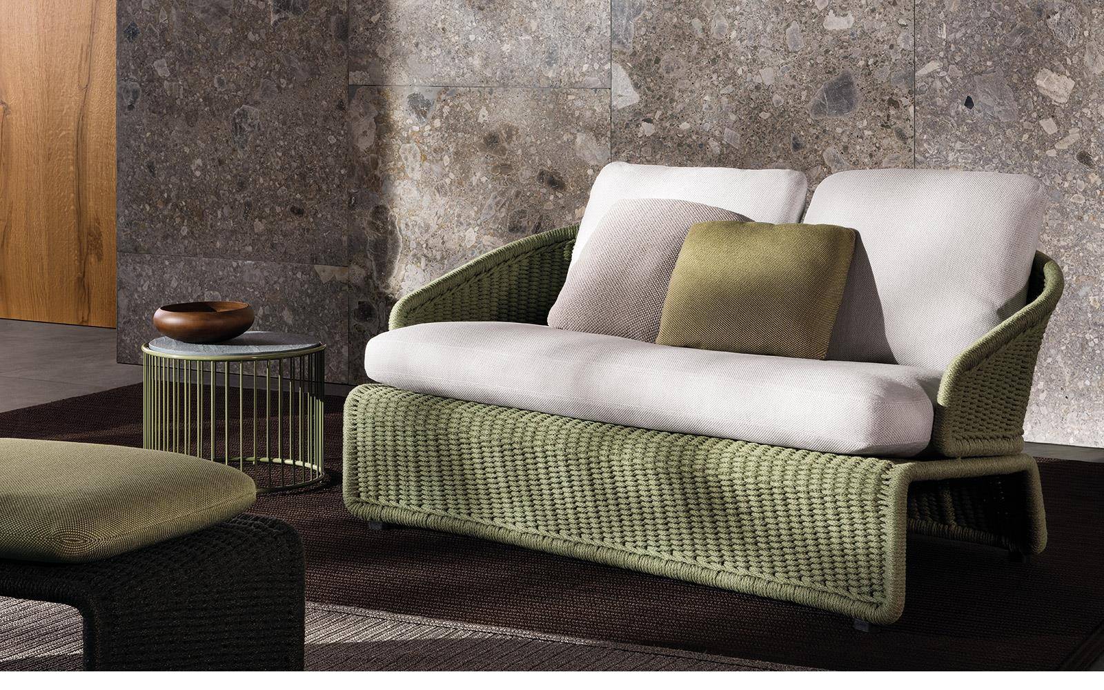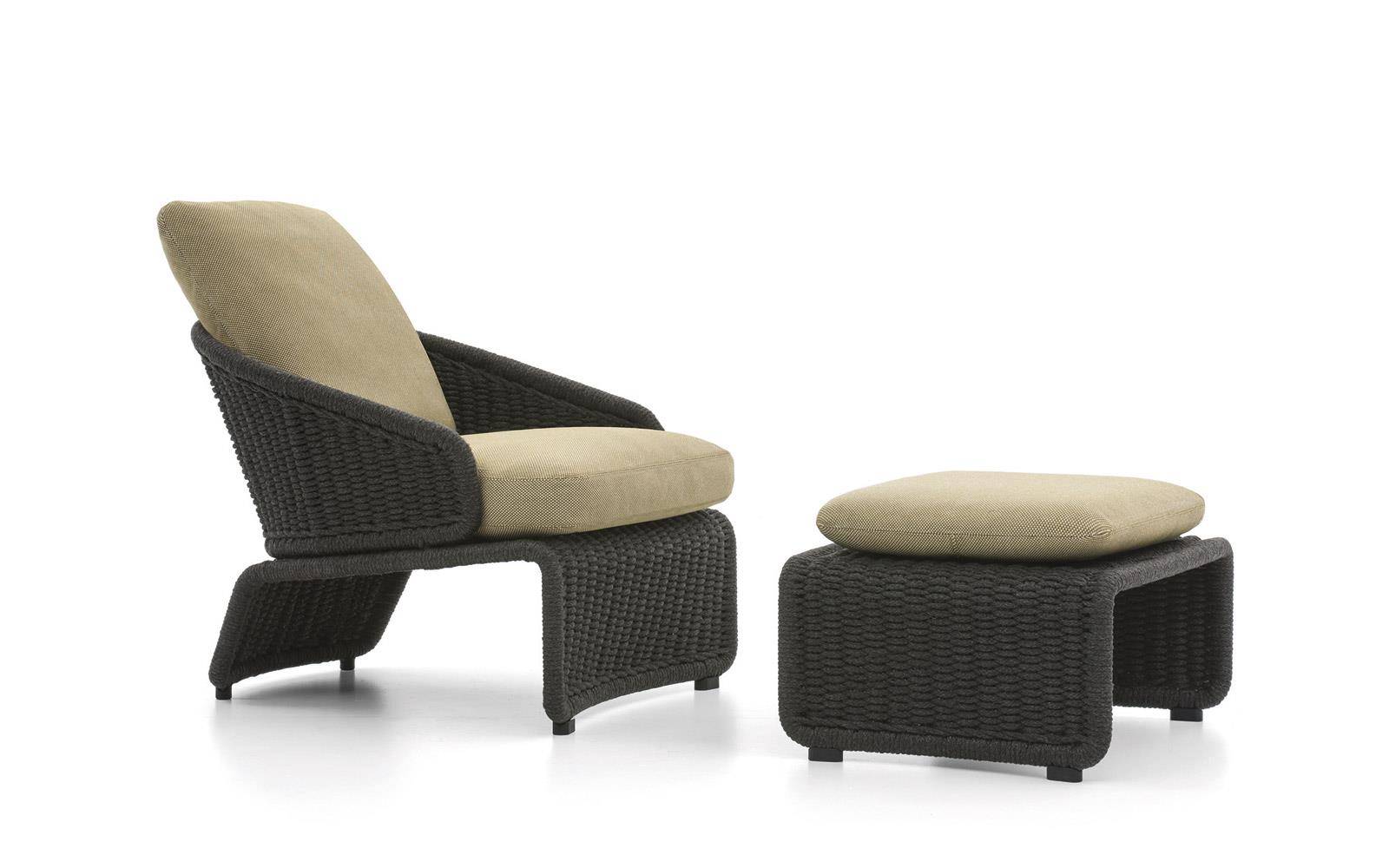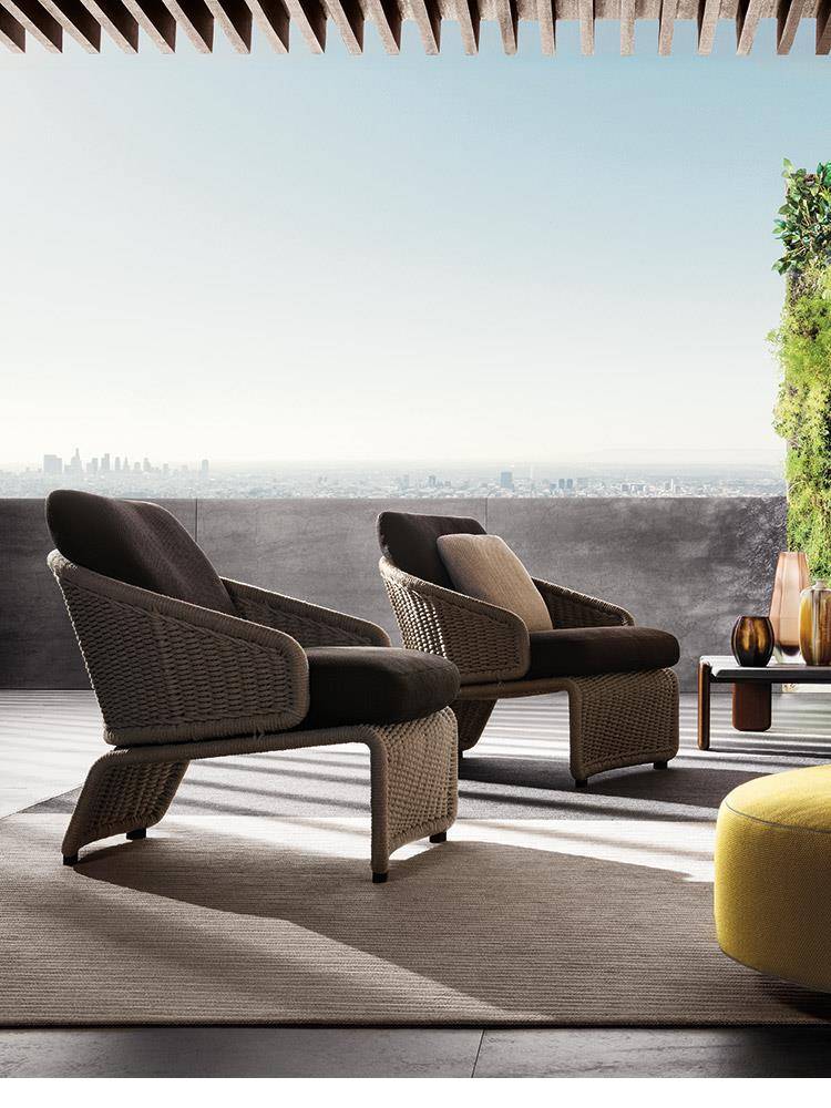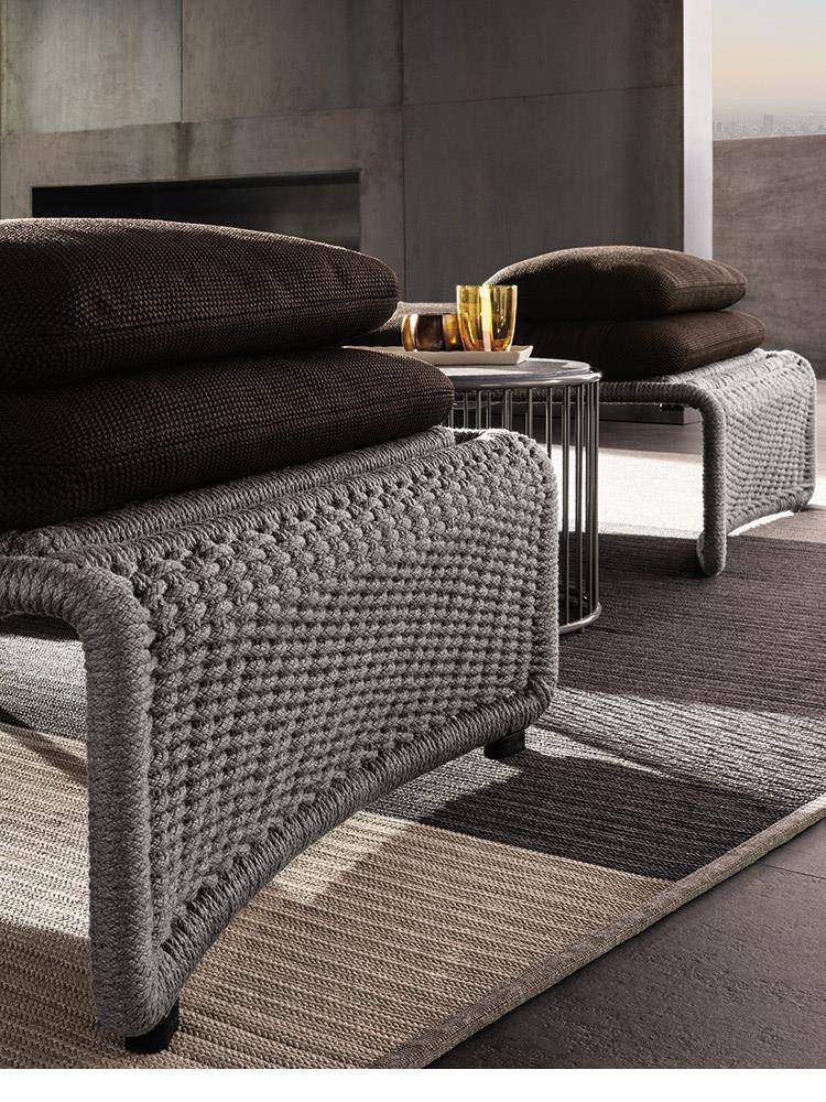 The Halley “Outdoor” family includes an armchair, footstool, sofa and daybed. Thanks to their streamlined proportions, they bring stylish, elegant decor to any setting, even urban and hospitality spaces.