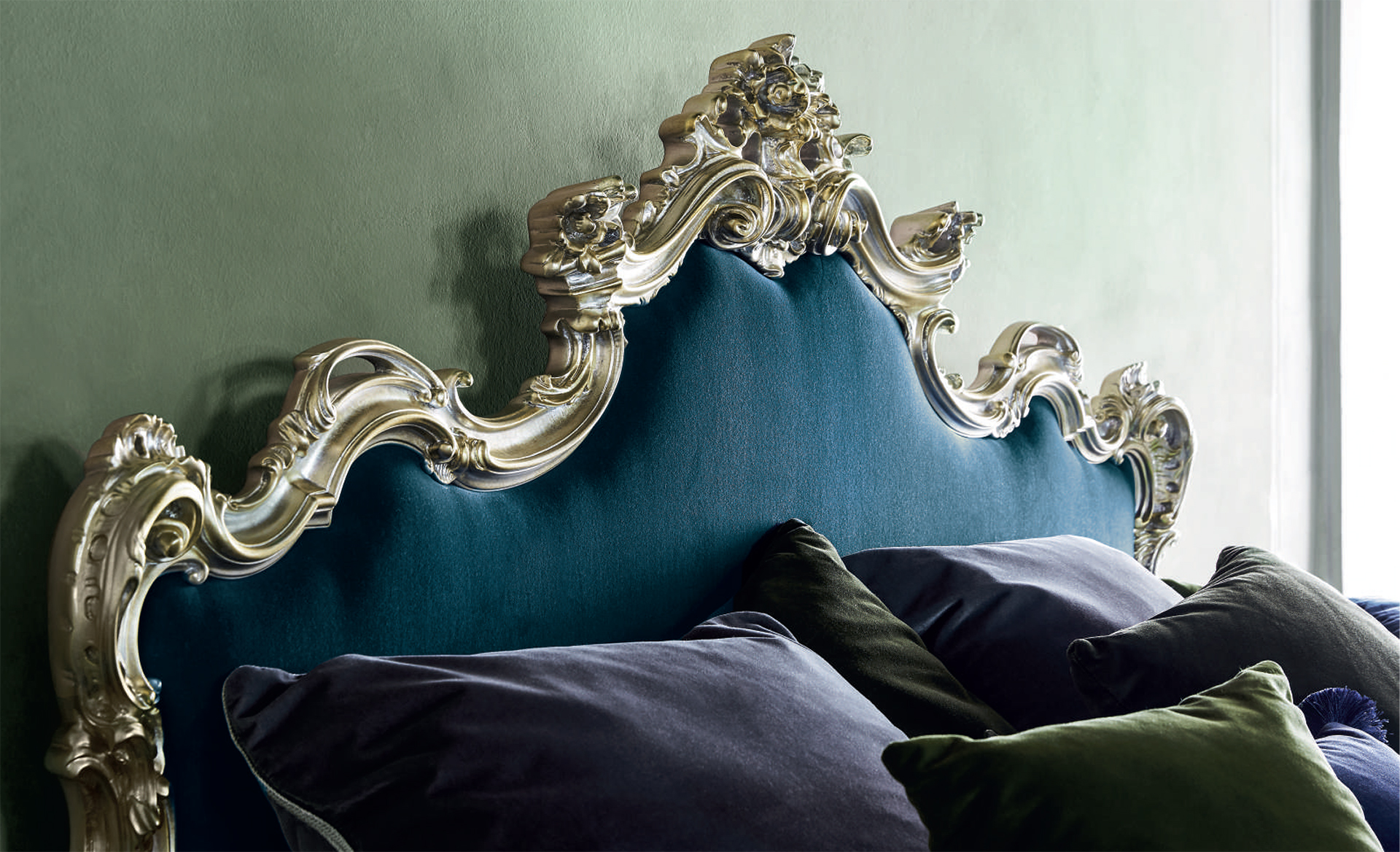Двуспальная кровать с высоким изголовьем и изножьем (возможен вариант кровати с мягким изголовьем или без изножья). Декор - пенополиуретан, наполнение - полиуретан. Возможны другие варианты отделки.