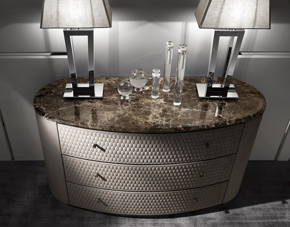 Классический комод в изысканном оттенке с современными элементами, который смотрится стильно и элегантно благодаря сочетанию гладкой и стеганой структуры. Комод включает в себя 3 вместительных выдвижных ящика c качественной фурнитурой, а закругленные углы делают конструкцию лаконичной и актуальной.