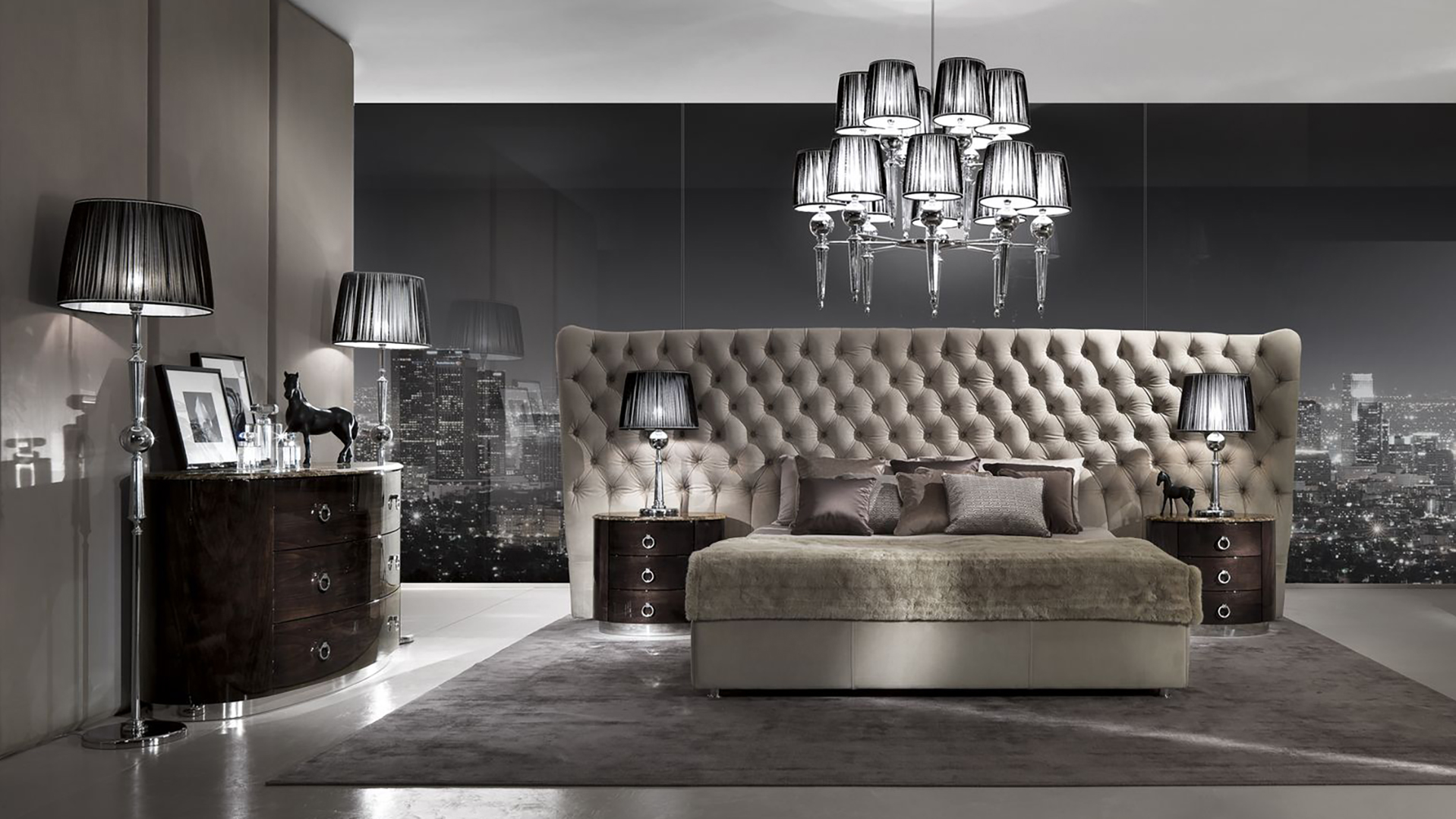 Тумбочка со структурой из лакированной фанеры. Основание из нержавеющей стали. Отделка фасадов выполнена с помощью кожи, столешница деревянная. Возможны иные отделки.