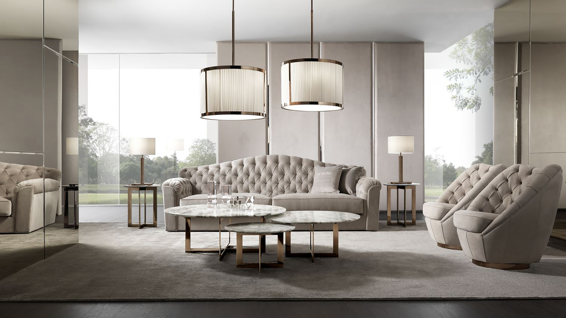 Диван в мягкой обивке. Спинка и подлокотники обиты в технике капитоне. Наполнение: полиуретан. Возможны другие варианты обивки.