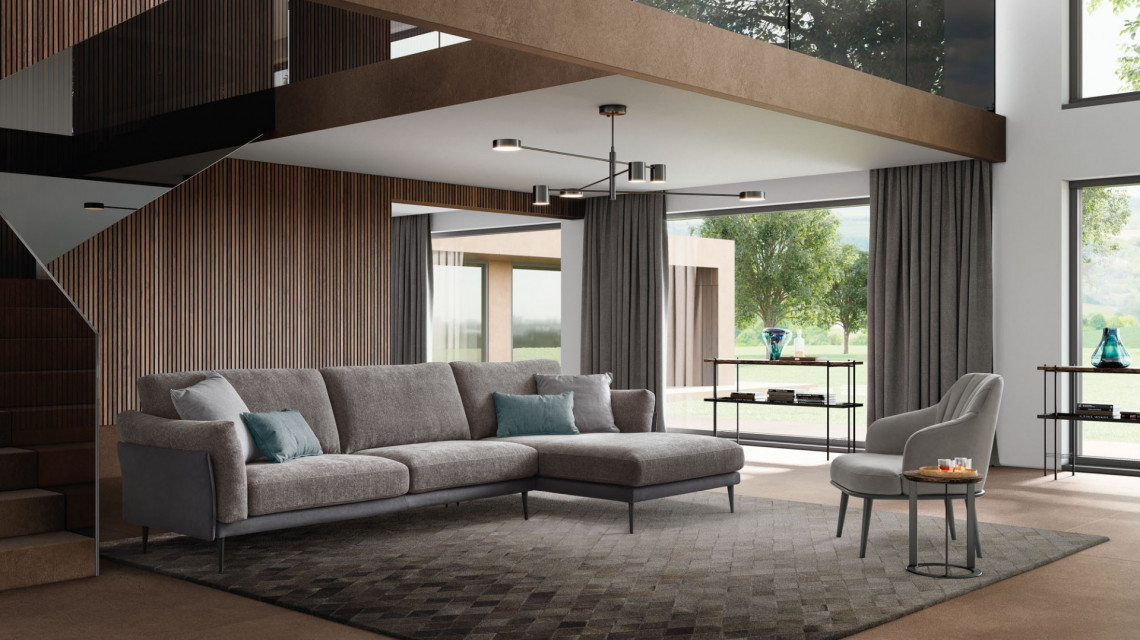Элегантная тканевая обивка Nicol приятна на ощупь и придает ей нетрадиционный вид. Высокие изысканные ножки приподнимают этот просторный диван, который выделяется своим стилем и интригующим сочетанием различных материалов.