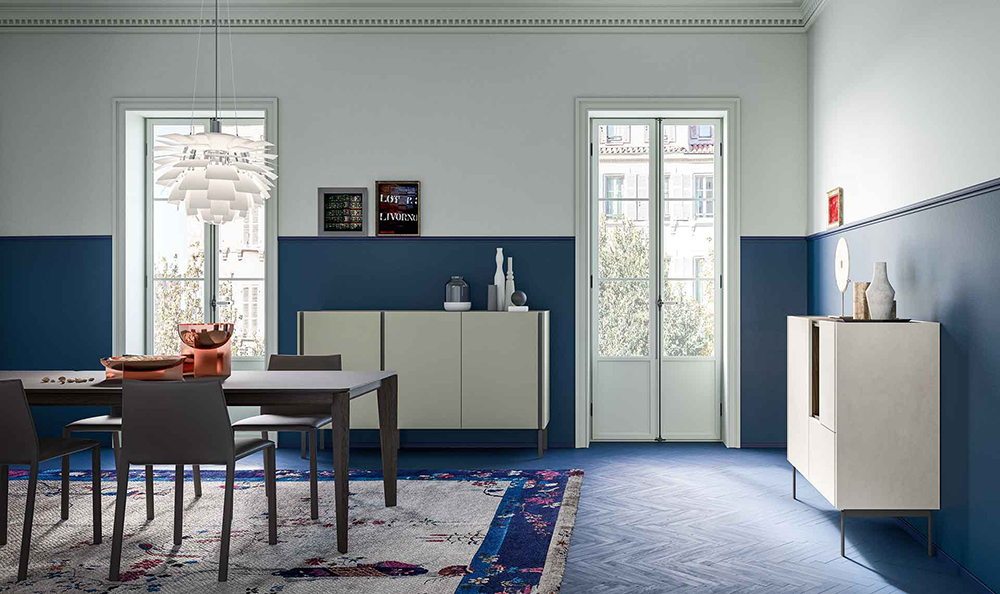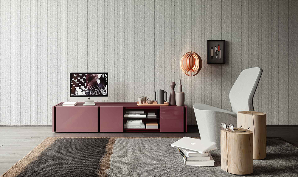 Da-Do is a living room range which includes TV units, cabinets and sideboards, which can be free-standing with feet or metal legs, or wall-mounted. Da-Do is highly customizable thanks to the two matching finishes: one for the exterior and one for the top and groove, which acts as a handle grip. An open-fronted compartment with a contrasting finish is also available.