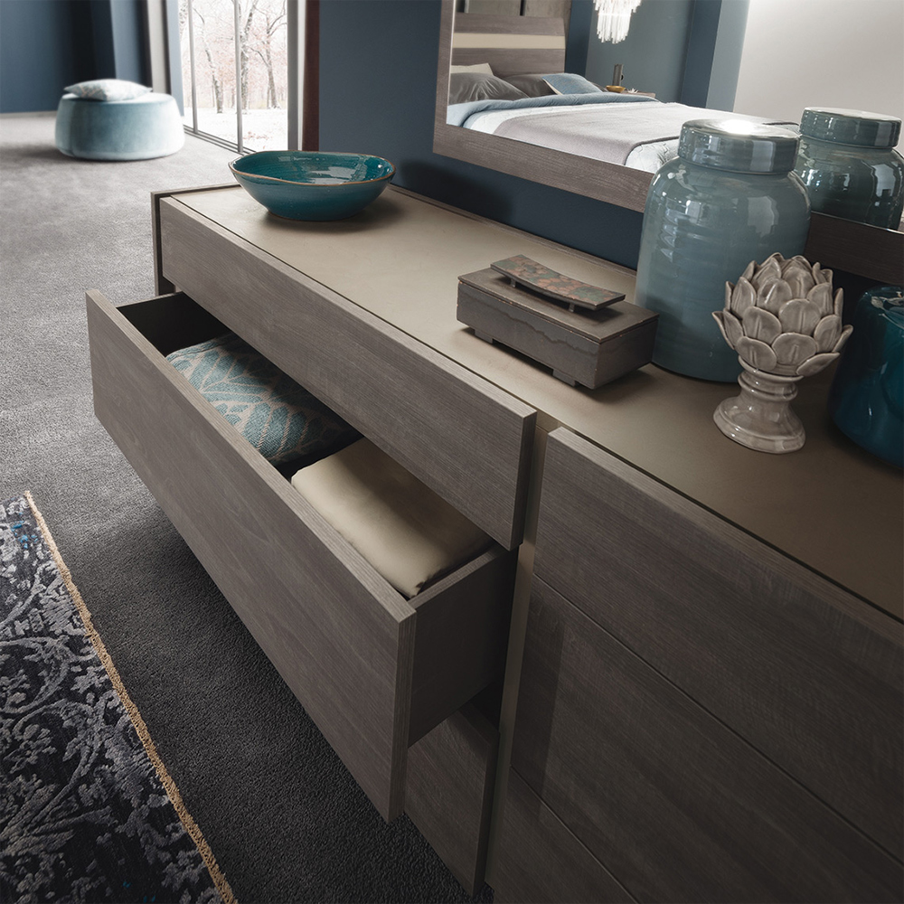 With a variety of storage options available and a handsome contemporary style, the Italian-designed and built pieces of the Nizza collection will transform your home. Vertical and horizontal lines create clean silhouettes that wonderfully complement the matte finishes of the collection to create a unique modern look.