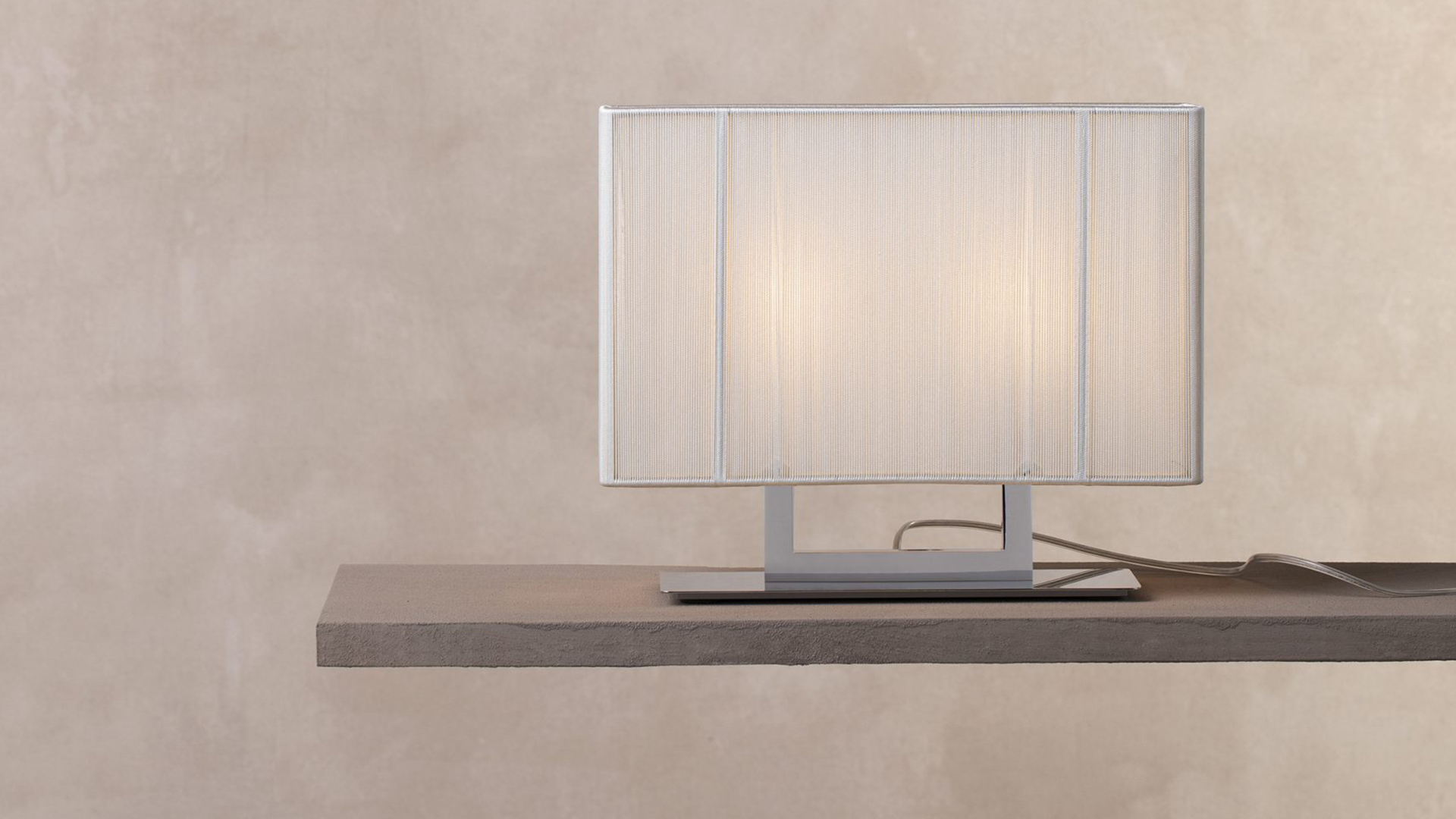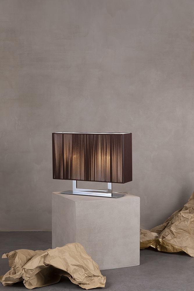Admire the texture of a precious hand-made silken thread lampshade. Clavius expresses its refined elegance by radiating softness and atmosphere between light and shadow.