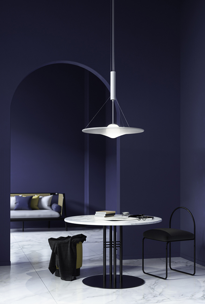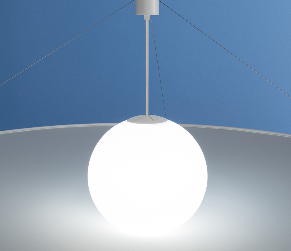 Lights and shapes in motion. For his first collaboration with Axolight Davide Besozzi proposes: Manto. It is a suspension lamp able to change shape and lighting effect thanks to the variation of the position of the blown glass sphere, which can remain suspended or end up immersing in a fabric mantle. The clarity of style, the orientation towards innovation and the love of research make Davide Besozzi one of the most talented emerging multidisciplinary designers.