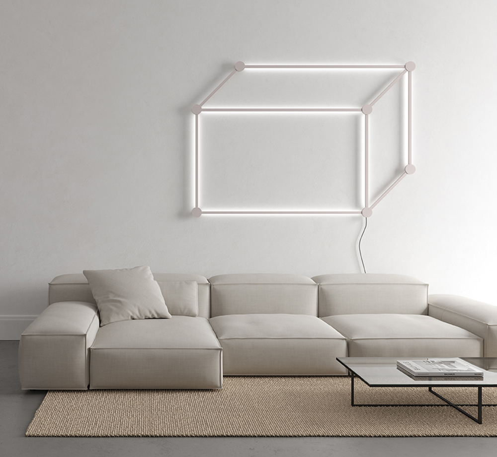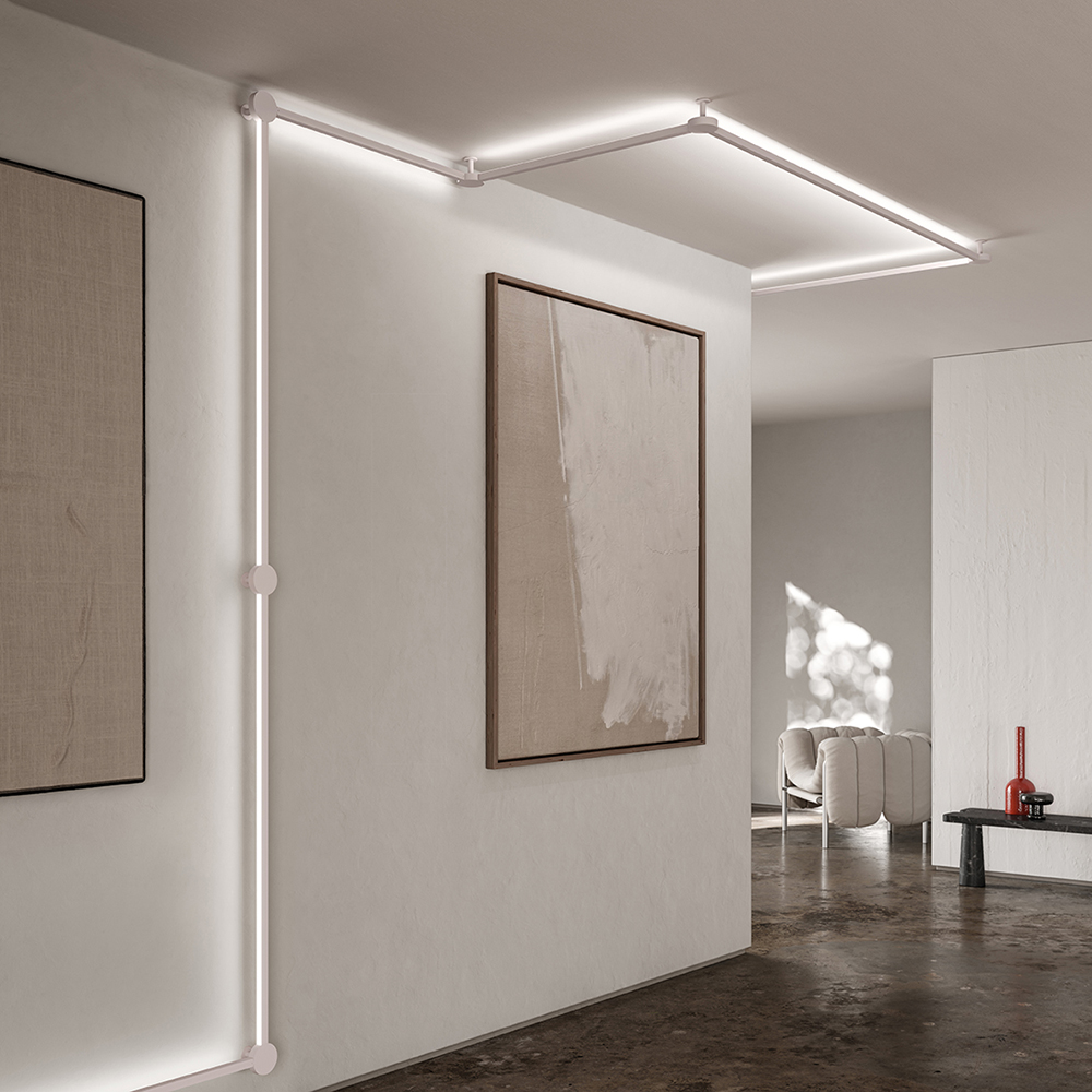 With Poses, Axolight sets itself the goal of allowing the customer to create innumerable flat geometric shapes (poses in fact), as well as the transport and diffusion of light within interior spaces through the use of straight lines and junction points.