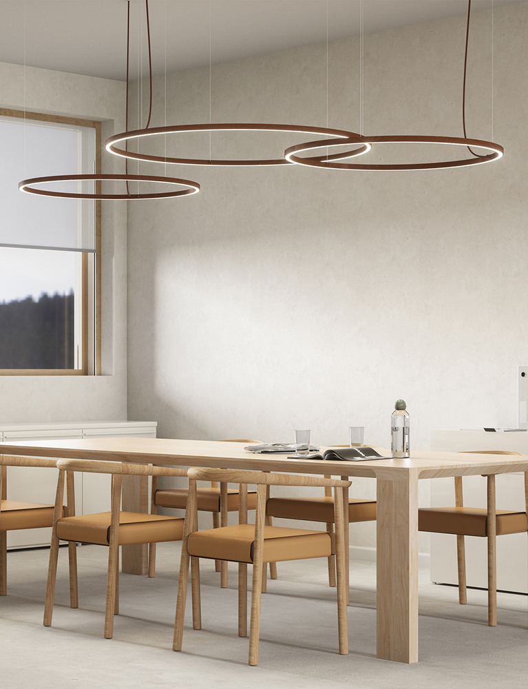 Essential graphic design and intense light. U-light expresses power and luminous efficiency emphasizing the aesthetic essence in a harmonious union that creates a strong presence in the space.