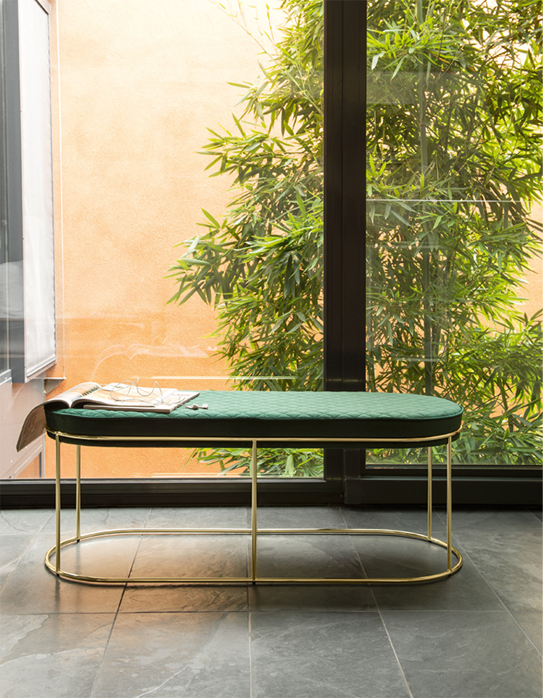 Atollo is an ottoman that belongs to the homonymous range made up of coffee tables, stools and benches. The circular seat cushion is padded and upholstered with decorative stitching. Its design and innate elegance make it a perfect addition to any setting.