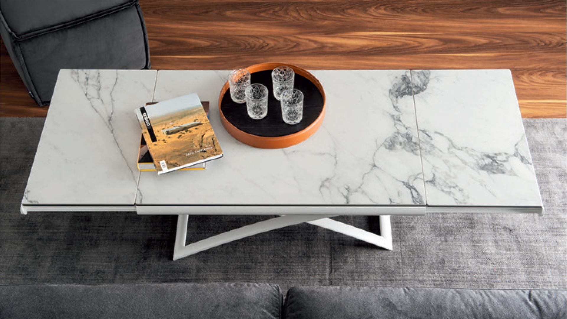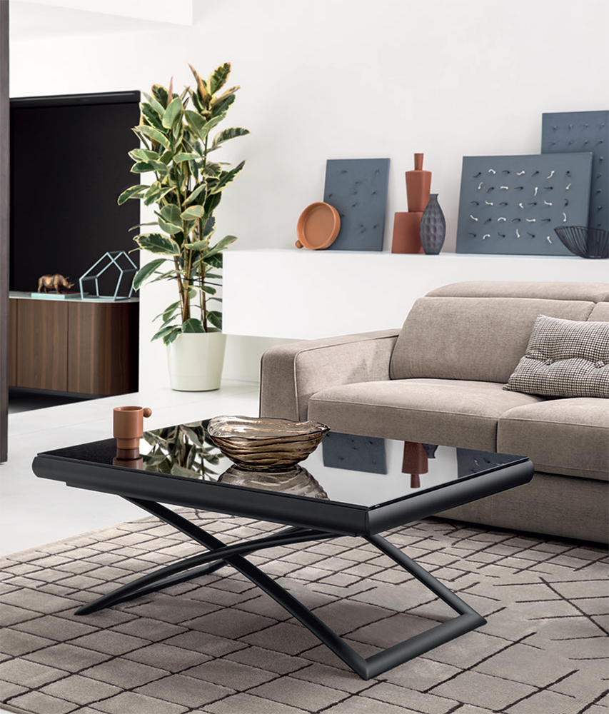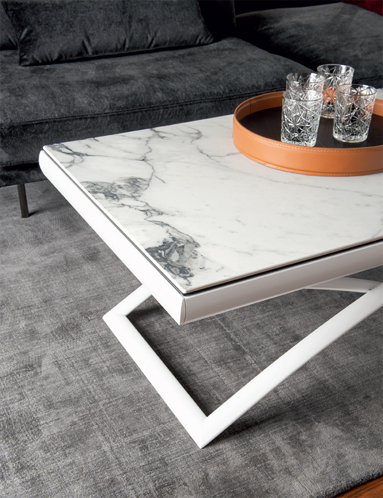 Dakota is a versatile table for the living area which can be easily turned into a dining table able to accommodate 6/8 guests. All you need to do is press a button located on the long side and you can adjust the height, choosing from 7 different positions. The table top and 2 drawer extension leaves at the sides align themselves automatically and come in tempered glass. Made from elliptical tubular metal, the base structure matches the table top. Multifunctional and easy to convert, this Dakota table will instantly adapt to any surrounds and lends itself to a contemporary lifestyle.