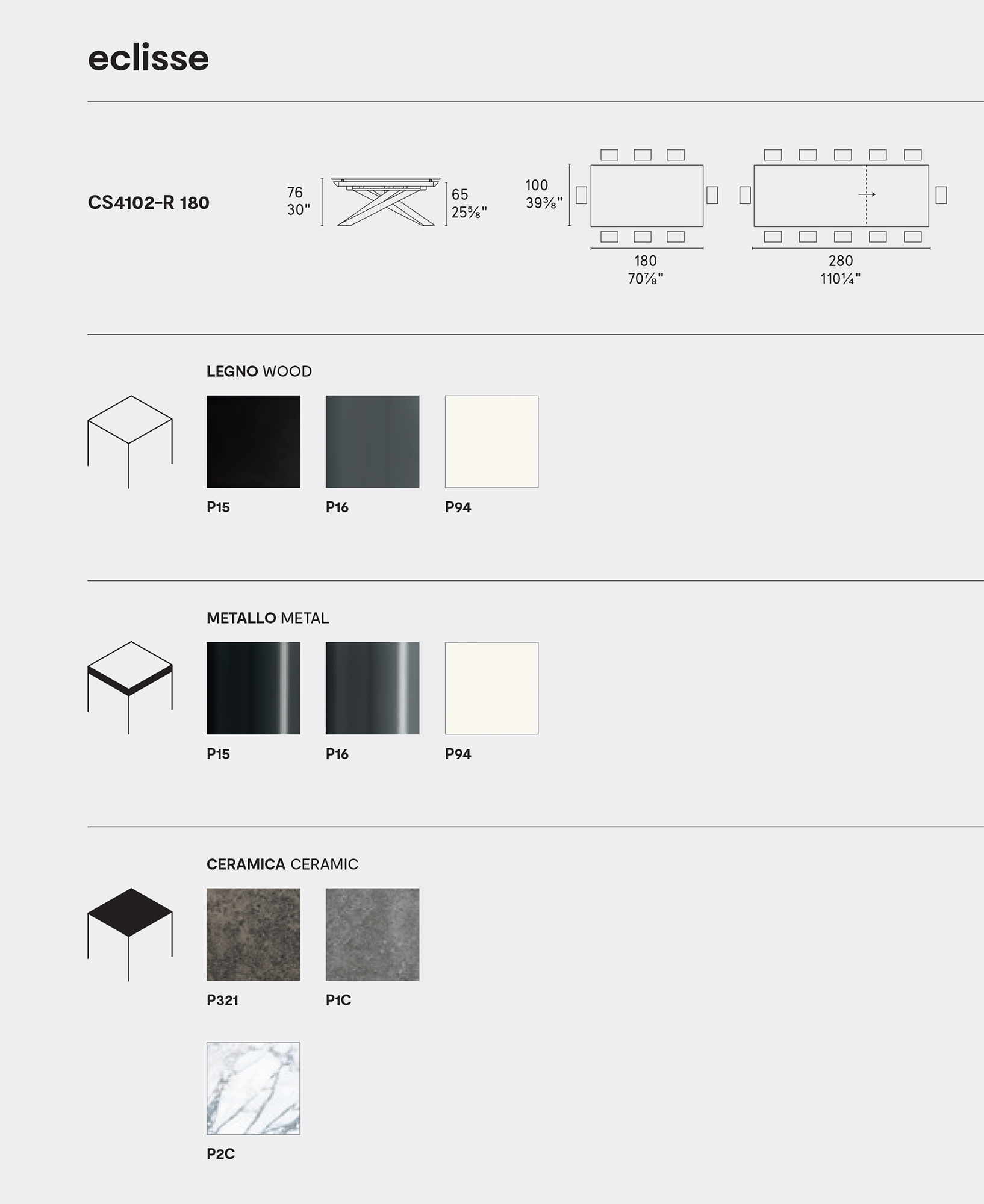 Eclisse will hold center place in your dining room. Discover the right finish for your setting.