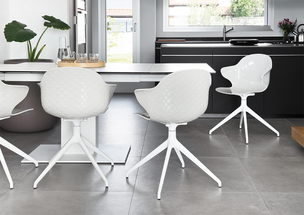 A creative spirit, crossroads between form and function, distinguishes the Saint Tropez chair, boasting attention to detail and a sophisticated design with a quilted-effect backrest.