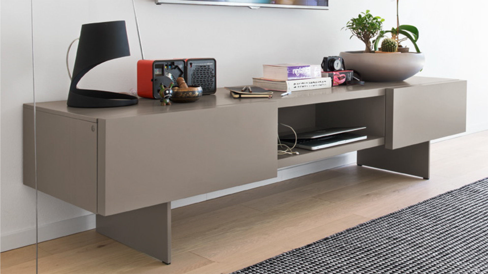 The Sipario sideboard collection can meet any furnishing needs of your dining and living areas.