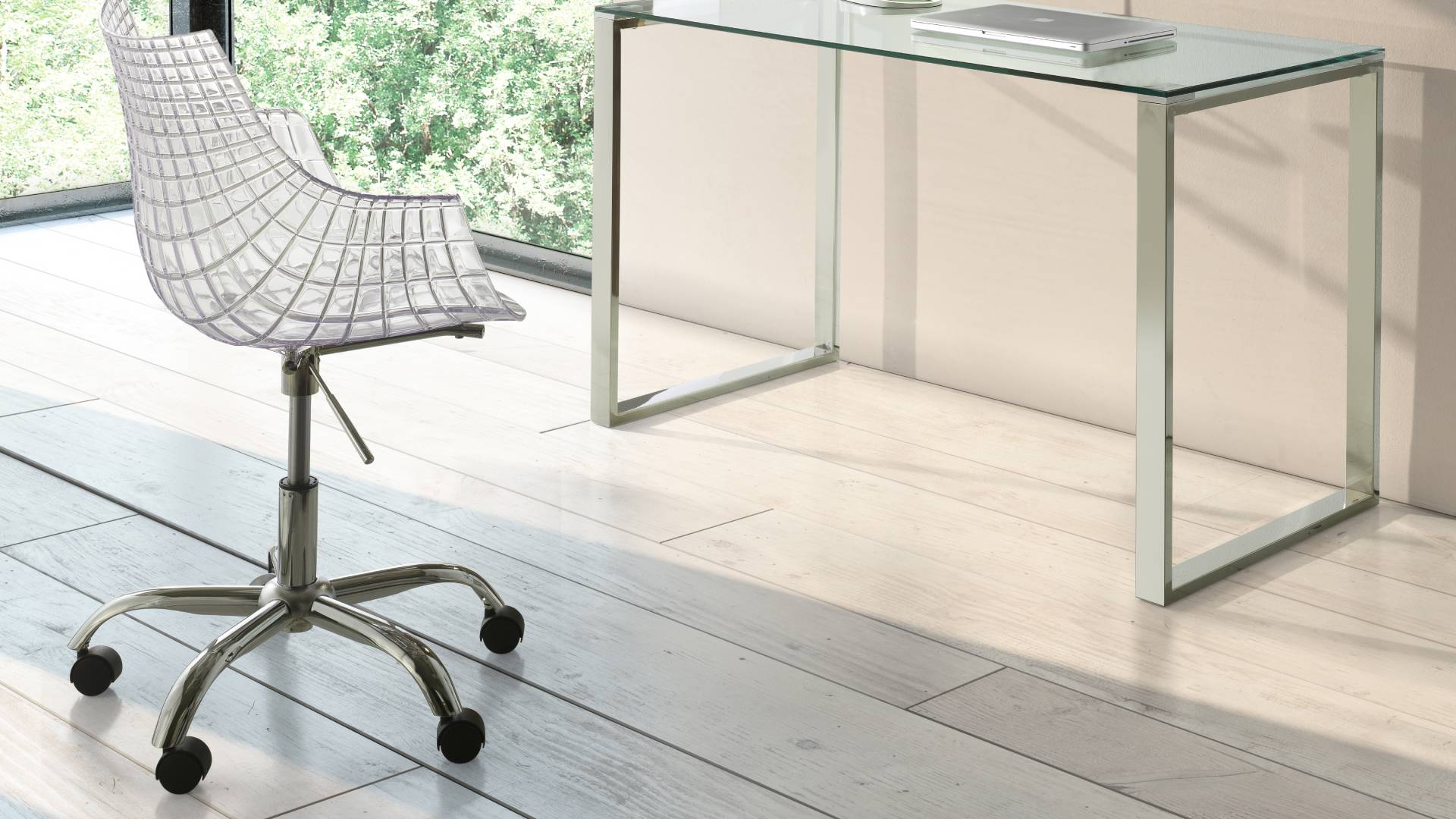 Swivel chair, polycarbonate clear,chair with wheels. Adjustable height.