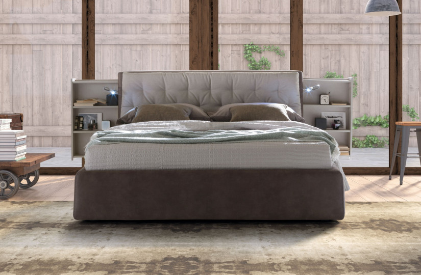 Concision implies utility, and the argument is hereby unfolded by a fresh design: ancient elements relate to modern ones, and Donovan makes no exception with its vintage glares. A refined quilting with retrĂ² recollections ennobles the outline of the headboard; the latter is not anymore a mere structural component but rather it has become a valuable chest that serves as storage compartment - together with its miniature foldable shelves. This is truly a different way to revive the concept of bedside tables.