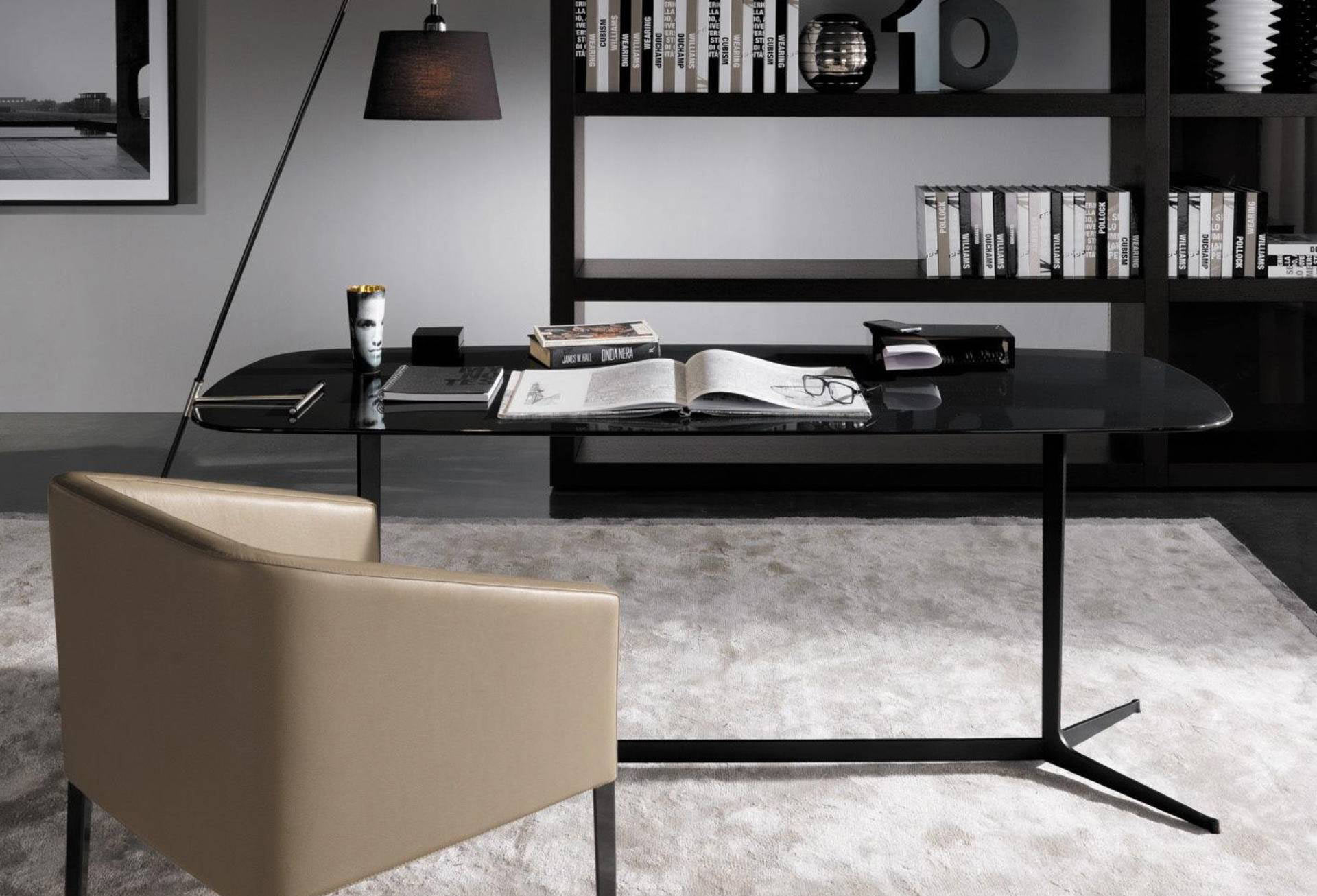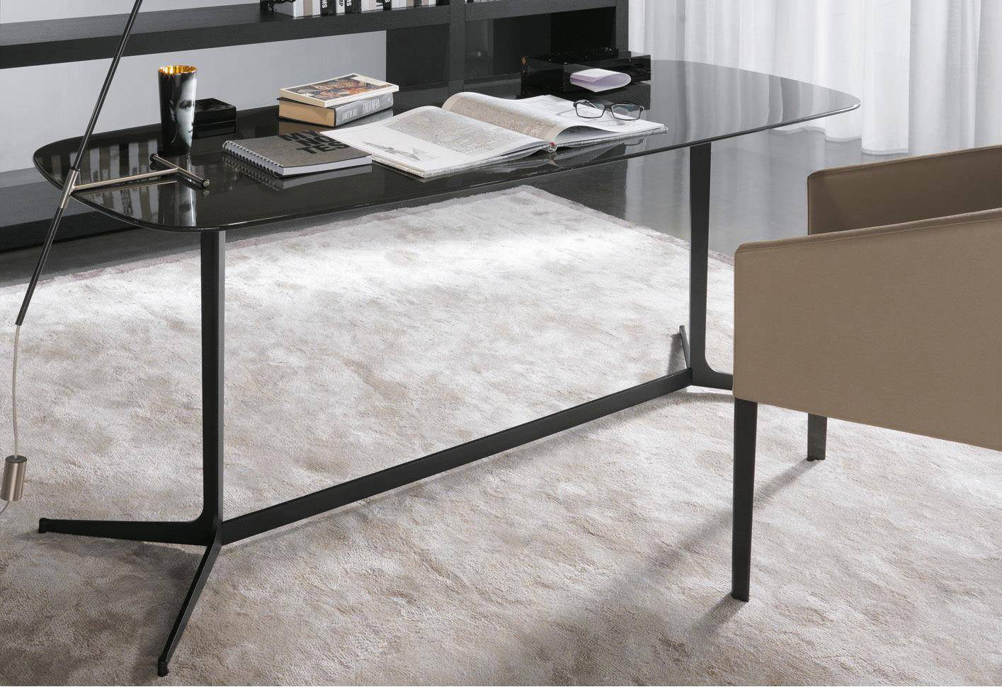 A writing desk and a lounge table featur-ing simple, contemporary design that can easily be paired with any of the pieces in the Minotti collection.
