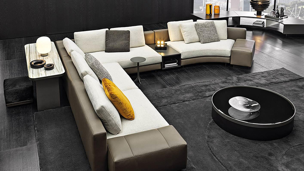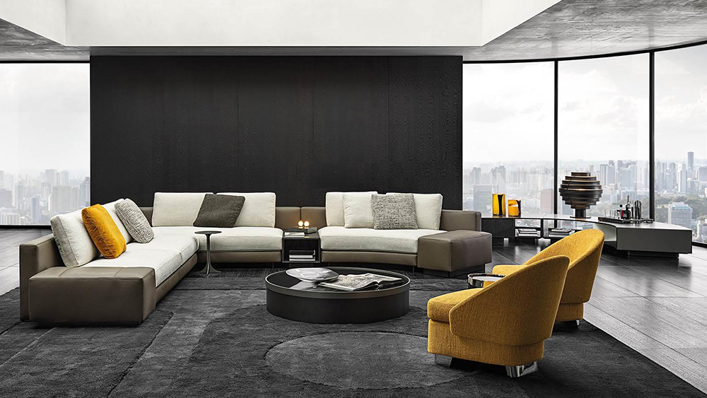 The next year, his partnership with Minotti evolved with two new designs, the Granville seating system and the Dan table, and in 2019 he created the Daniels seating system and the Amber coffee tables-low units.