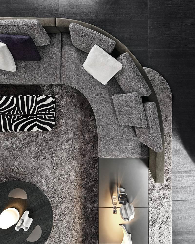 Comparable to a landscape design project, where carefully plotted combinations of elements create a new domestic scenery, the Daniels seating system redesigns the living areas with brand new compositions, in which regular curves and ellipses interrupt the linearity of the layouts, imbuing them with a more dynamic momentum.