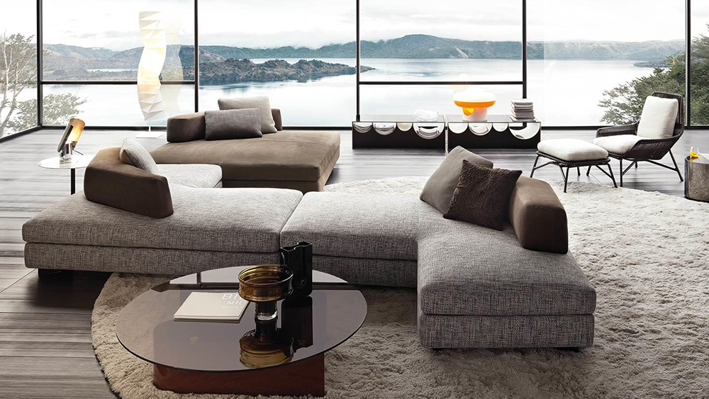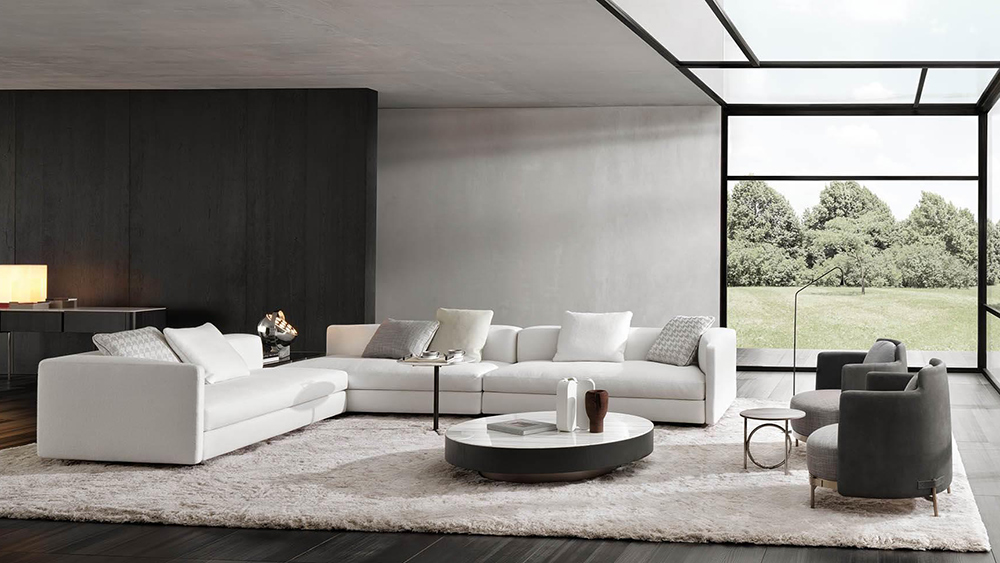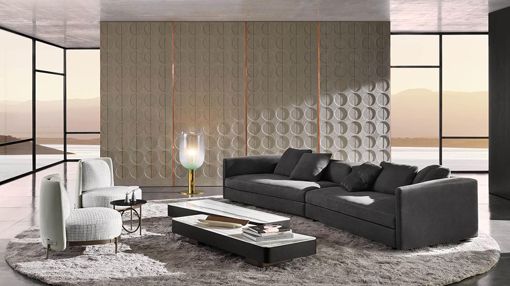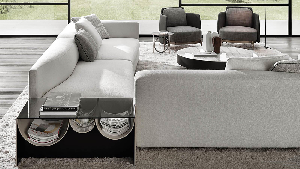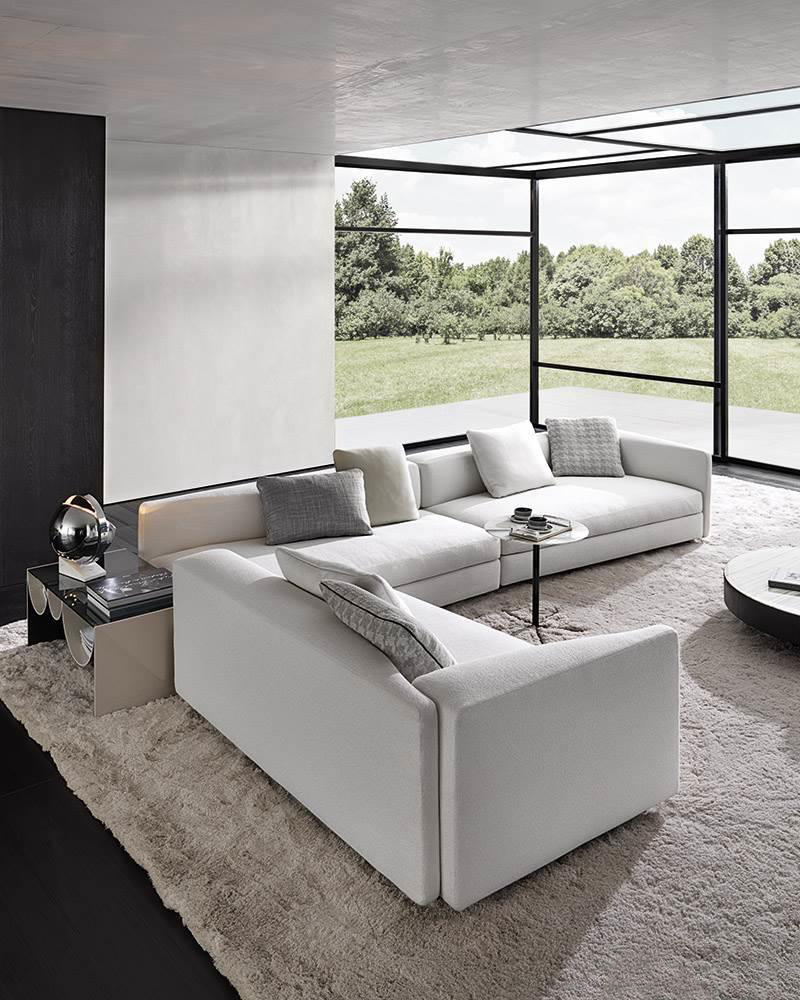 The next year, his partnership with Minotti evolved with two new designs, the Granville seating system and the Dan table, and in 2019 he created the Daniels seating system and the Amber coffee tables-low units.