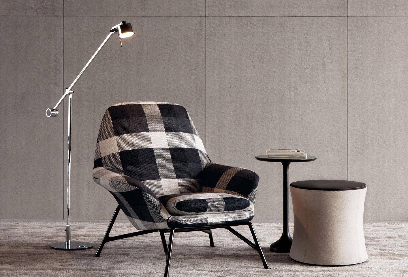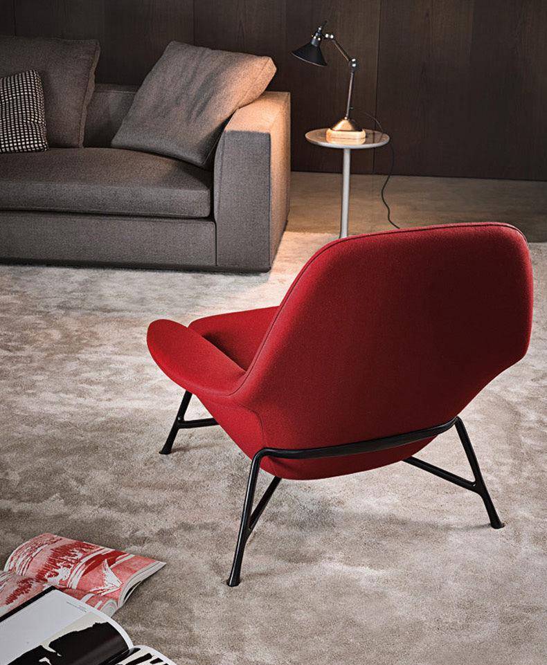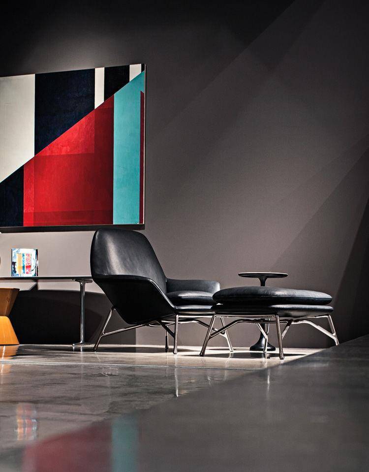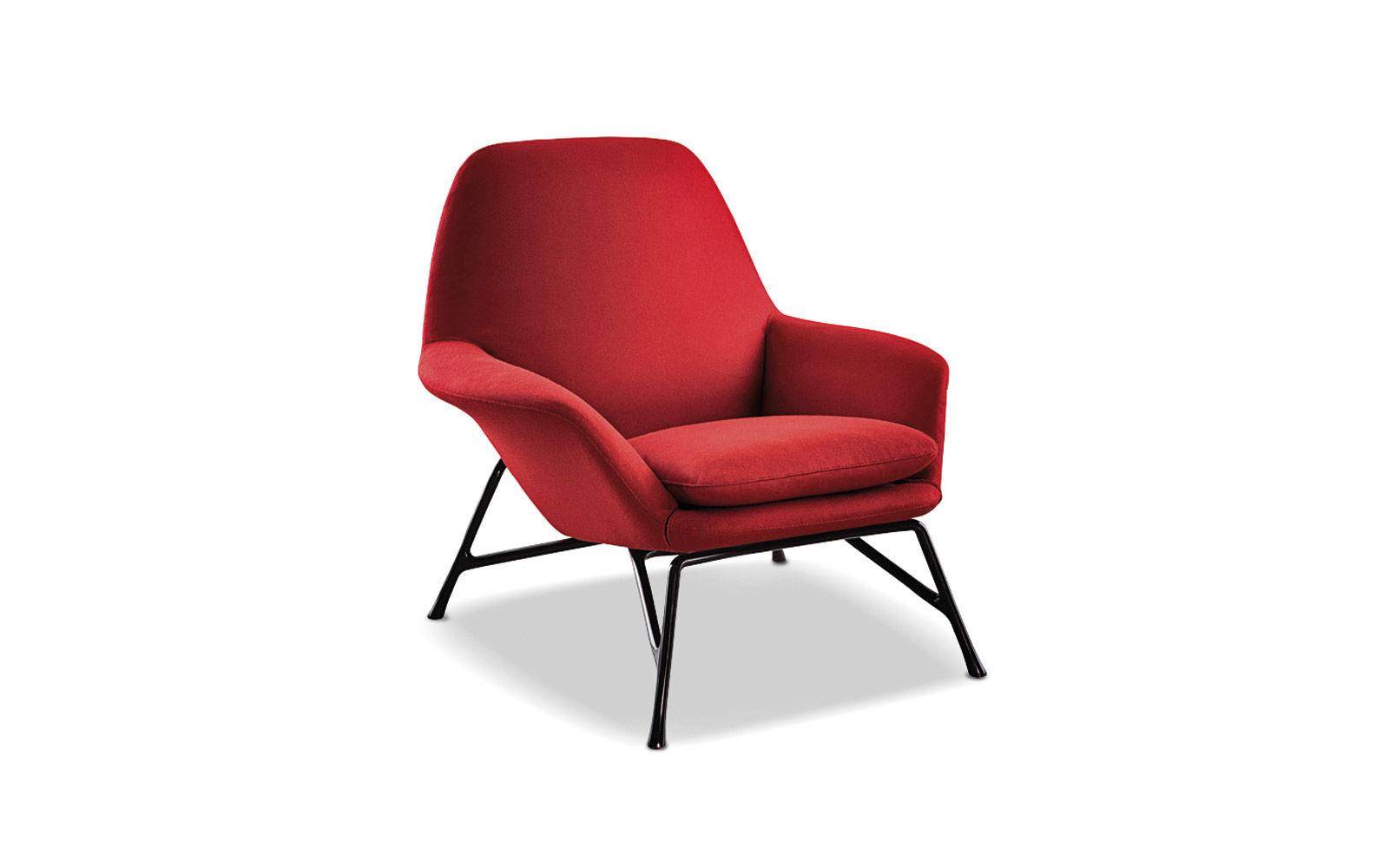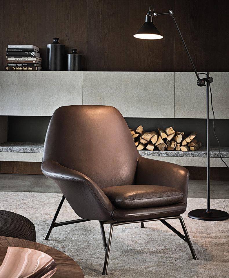 An armchair featuring the latest technology and the most innovative materials in shapes that are reminiscent of the classic design tradition of the 50’s. A particularly complex design process gives rise to a die-cast aluminum base, a shape with changing lines and thicknesses producing an industrial design element whose aesthetics are similar to a sculpture.