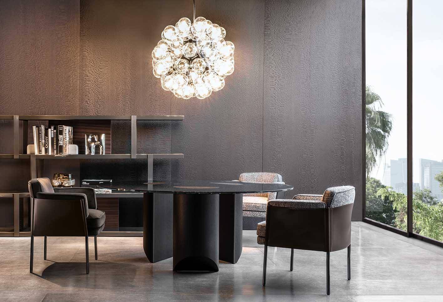 In 2019, GamFratesi designed two indoor proposals for Minotti, namely the Angie armchair and dining little armchair and the Shelley armchair, also available in the lounge and dining little armchair versions. The partnership evolved and was strengthened in 2020 with the launch of the Fynn family of seats, in the armchair, lounge and dining little armchair, bench and coffee table versions. A project characterized by an ultra-light aesthetic, expressed in the indoor and outdoor versions, associating the creativity of fine cabinet-making found in the wooden elements with the sophisticated sartorial elegance of the fabric or saddle-hide coverings.