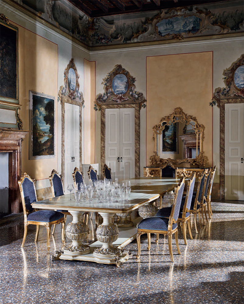 Living room furniture Demetra is made in baroque and rococo style. The main material of the headset is natural wood, processed using various techniques. The collection is covered with hand-carved wood, hand-painted, gilded handles, glasses. Filler - polyurethane. The set is available in different finishes.
