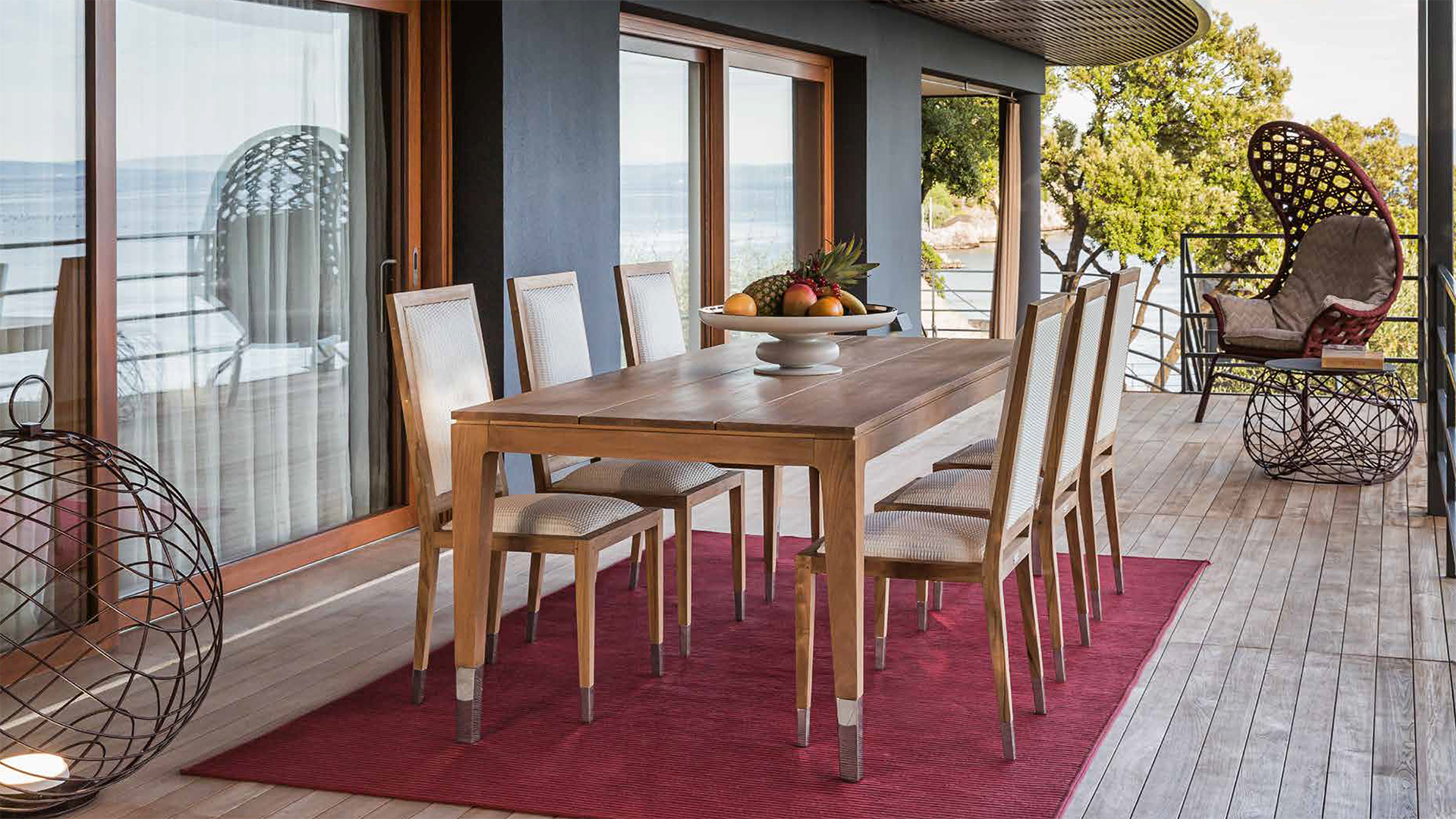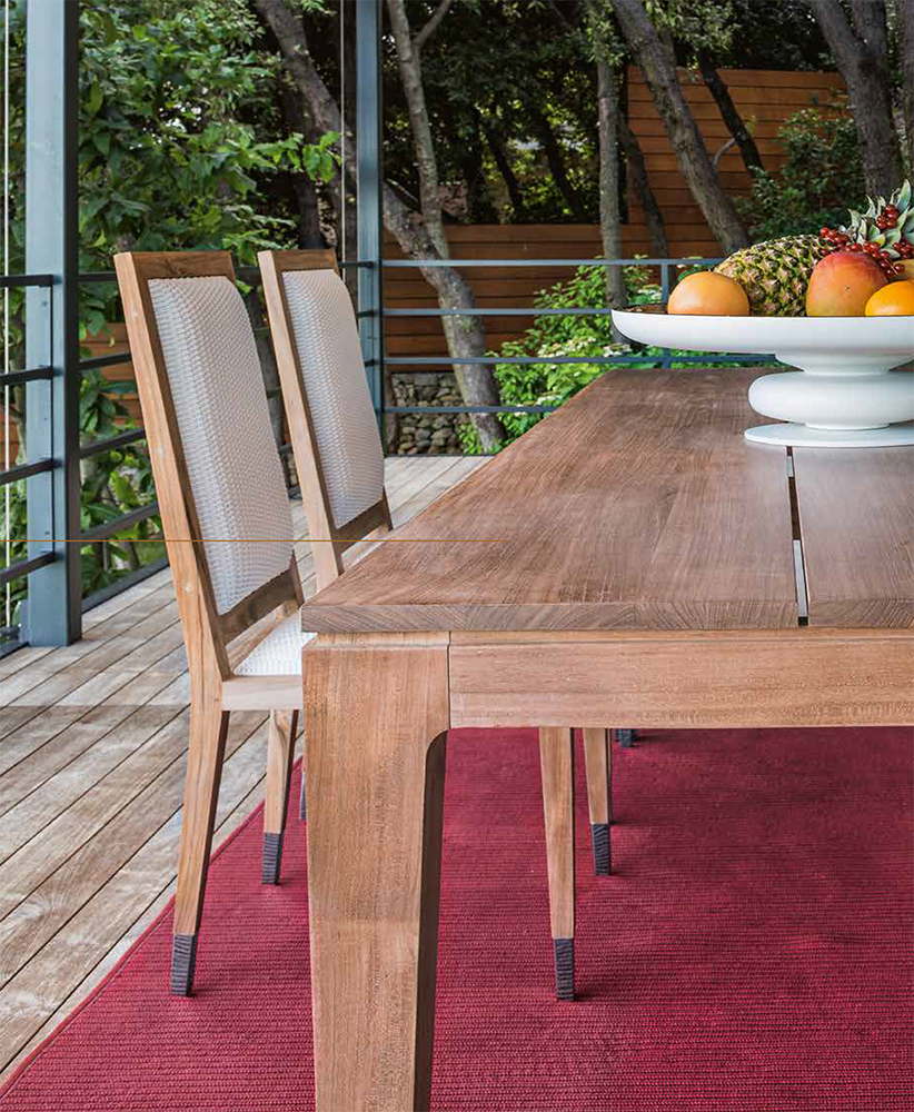 The design is essential but full of shades: the wood conveys an intimate dimension to the space it is placed in, and the teak in particular has a warm nuance that immediately carries a relaxing sensation. Lastly, this type of wood is extremely resistant; in fact it is employed for the outdoor furnishing for gardens, terraces and swimming pools.