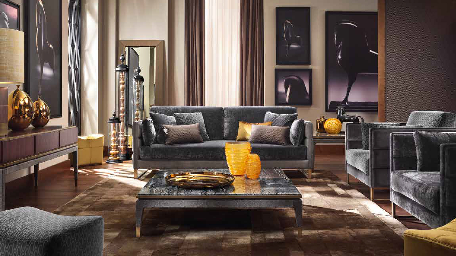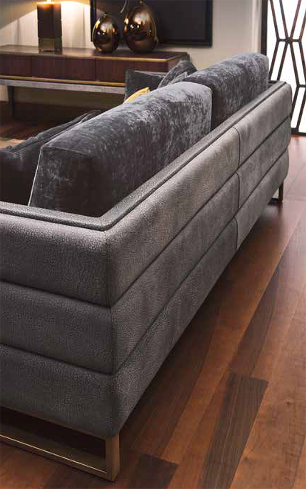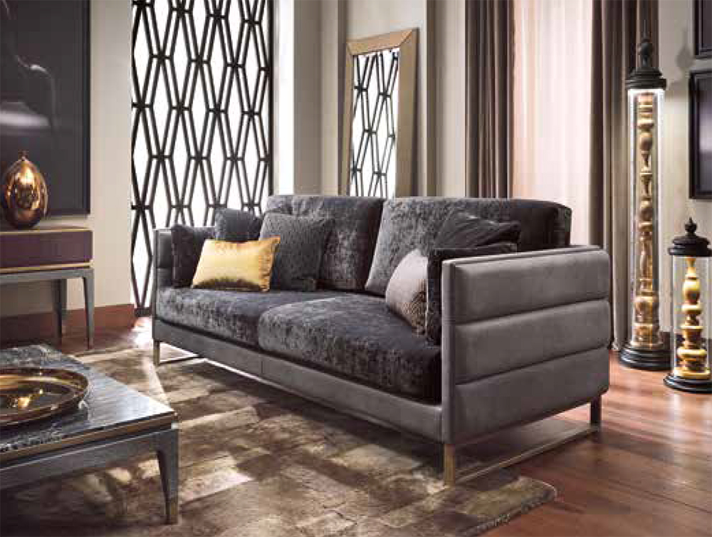 Caesar stands out among classical sofas with a modern touch thanks to its elegant linearity, its soft shapes and the dualism between leather and steel. The soft shapes created by the padding inside and outside the armrests and the pillows creates a unique sensation of relaxation.