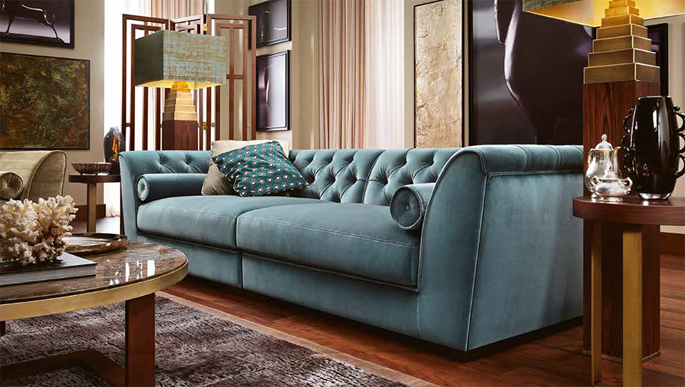 Its large size makes it the perfect couch where to share relaxing moments or enjoy a soft moment of rest alone. It presents a chic design: the capitonnè working and the rounded cushions (both optional) provide the couch with an added touch of refinement, thus completing an already existing exclusive environment. In fact, Opium is part of classic couches that express modern taste as well.