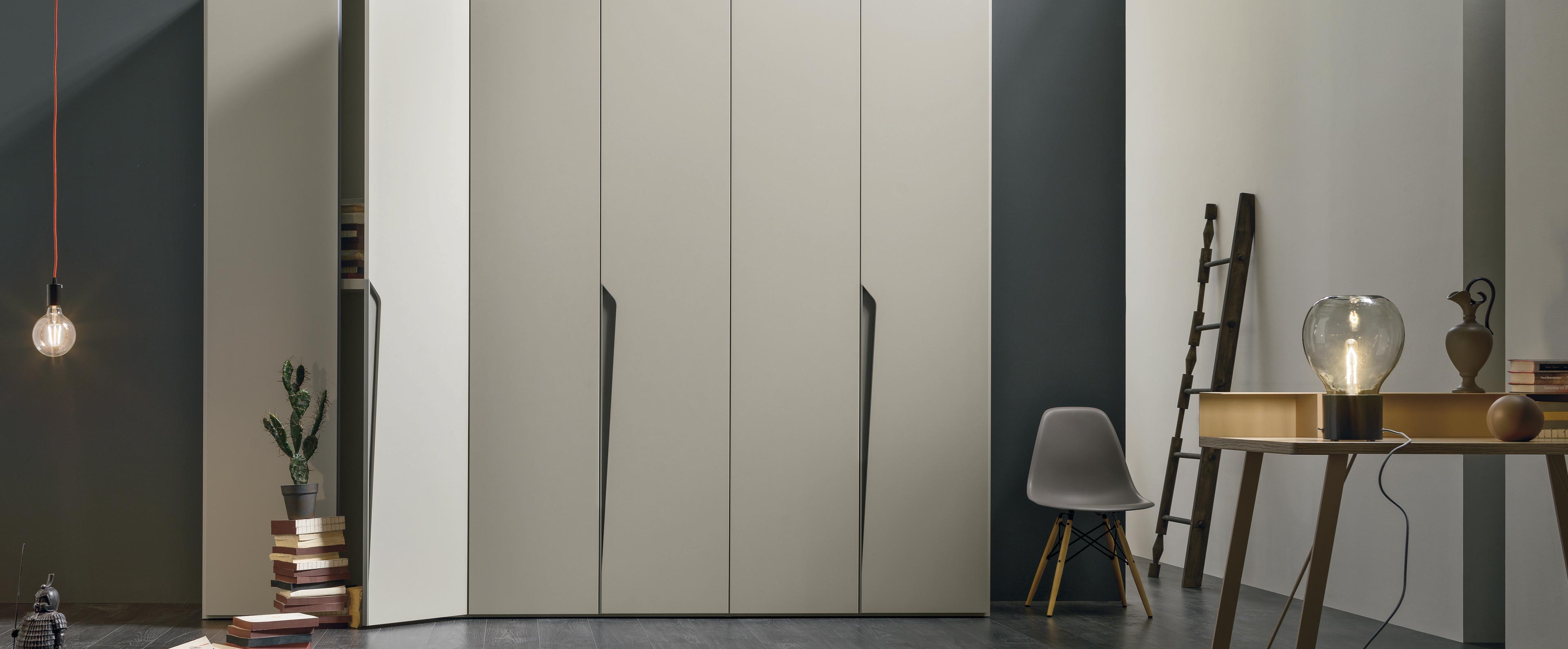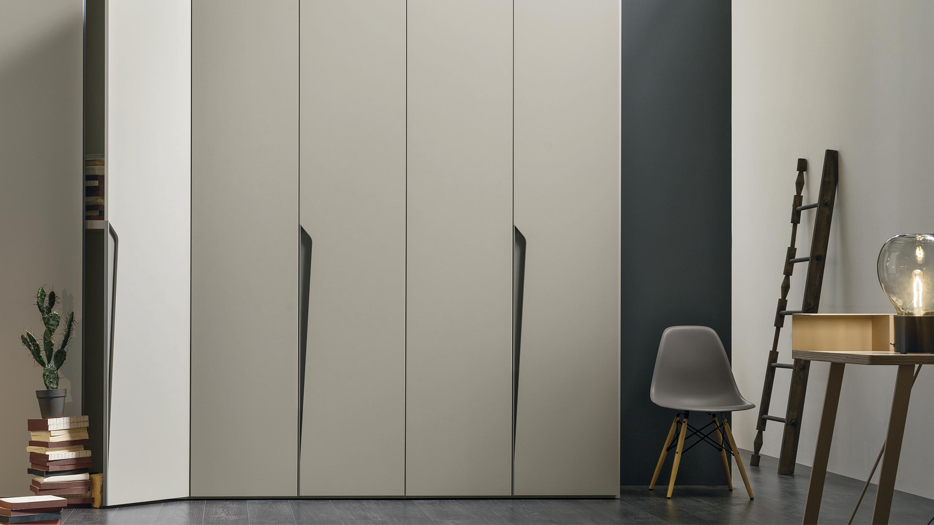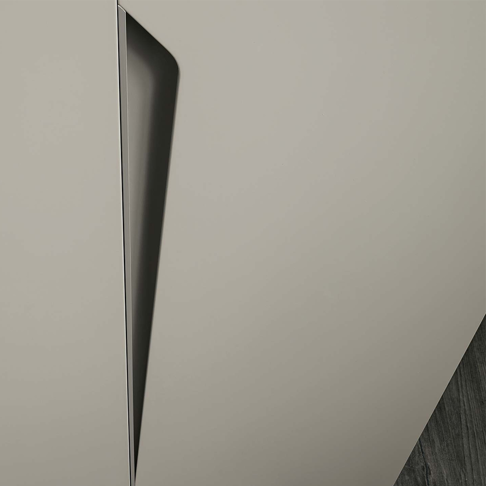 The shape of this handle looks like a teardrop that runs down from the front of the wardrobe`s hinged doors. The detail of a handle is sometimes all it takes to add character to a wardrobe and a creative touche to the room.