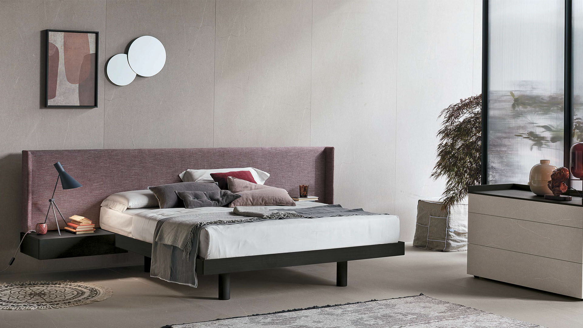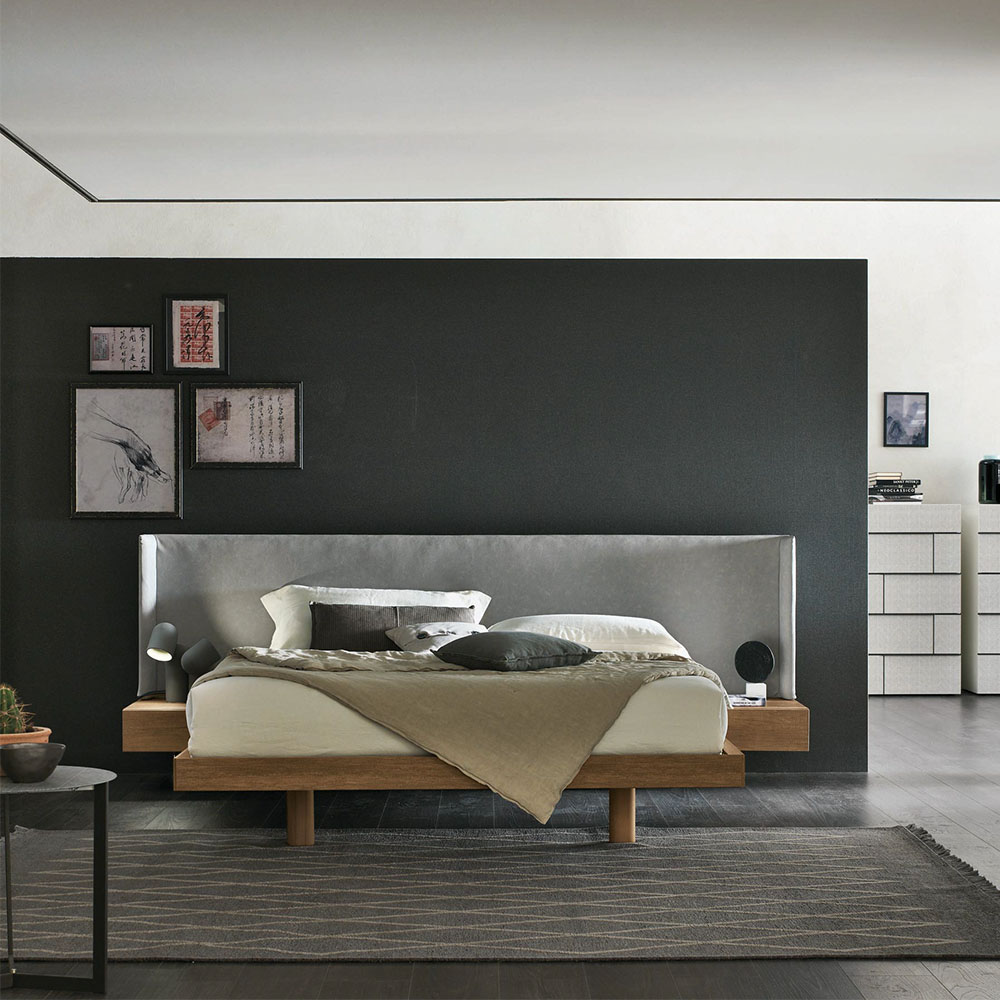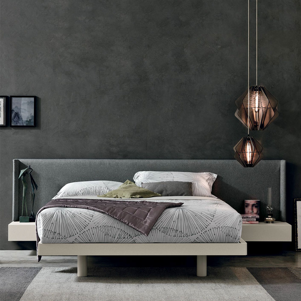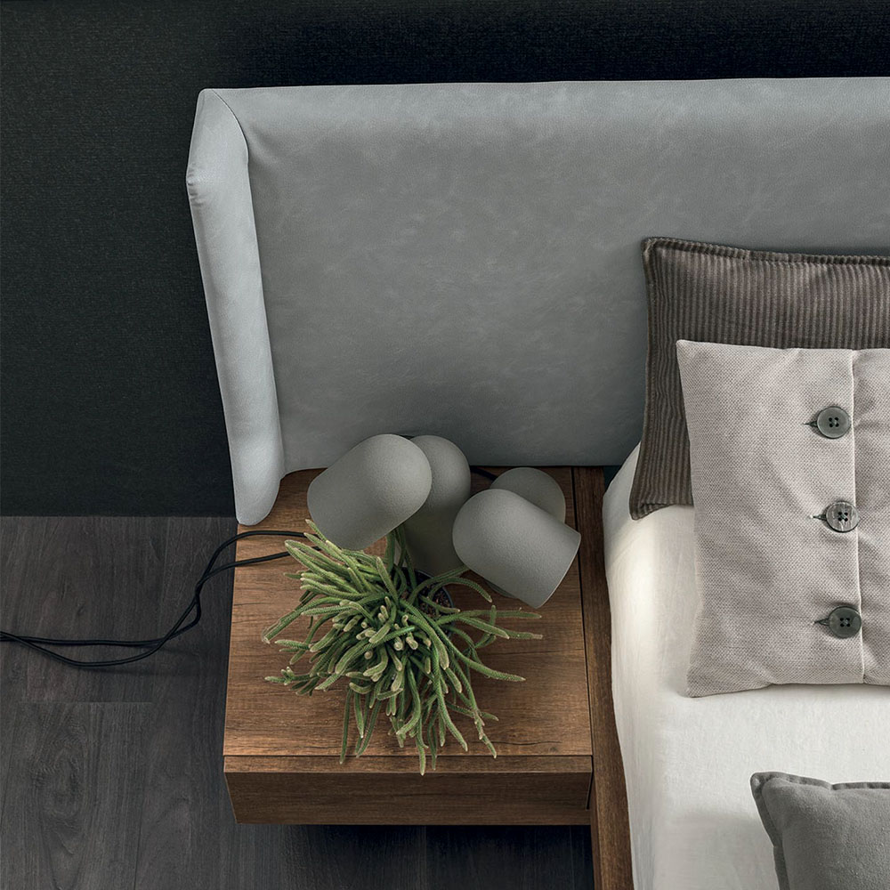 By word and by dee, the Fusion bed blends various elements together, forming a spectacular whole made up of a headboard, bed frame and bedside units.