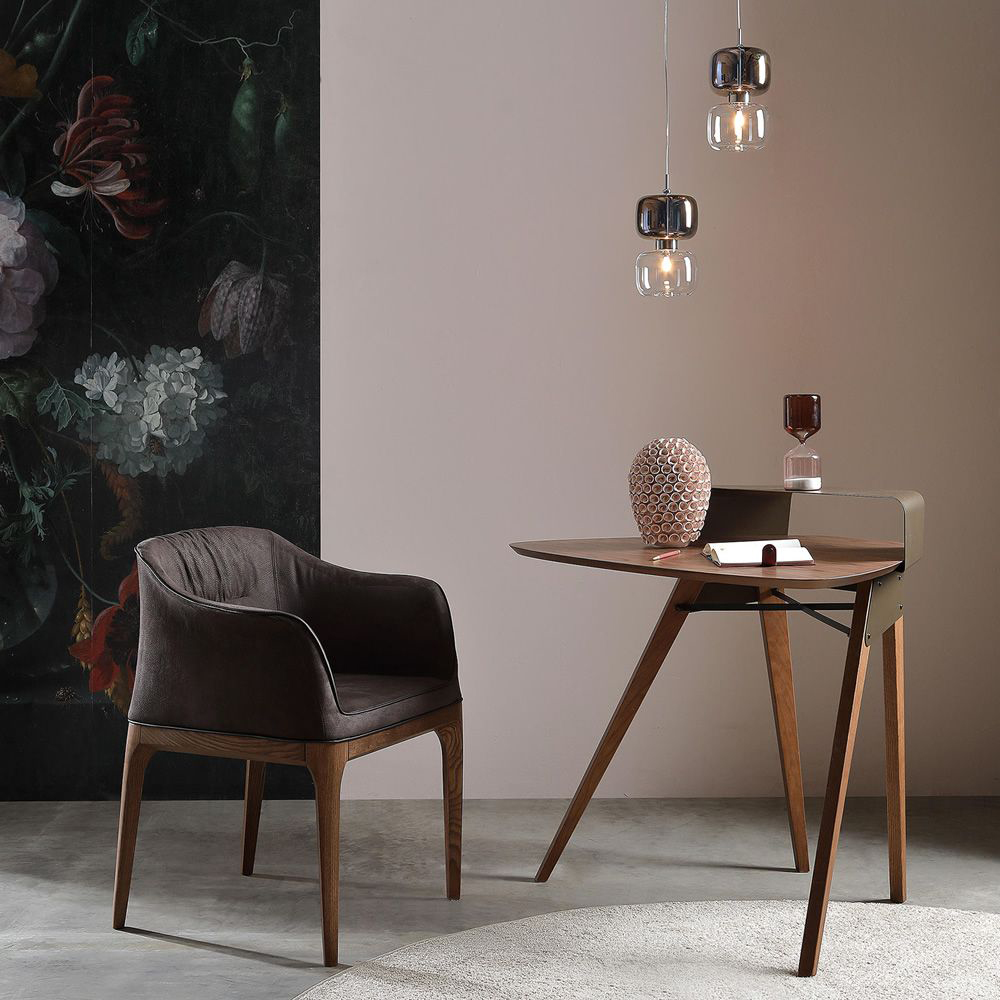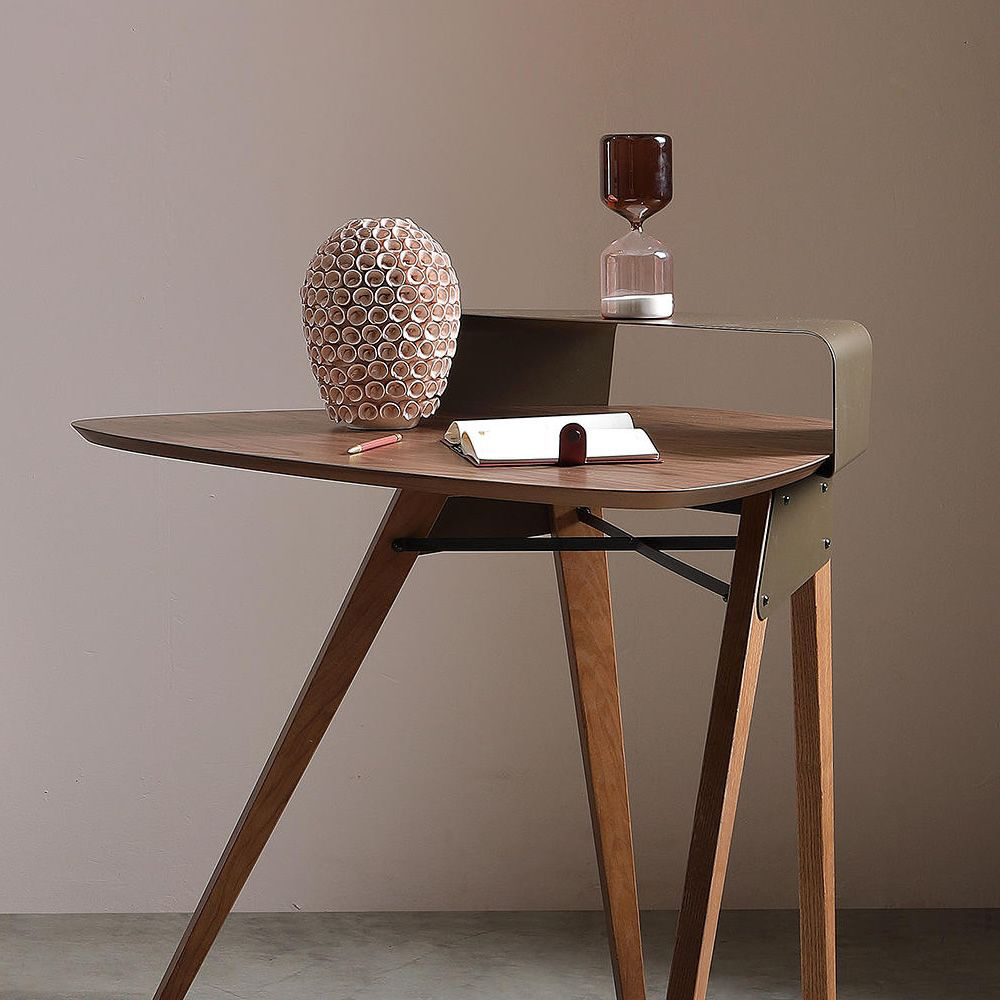 Nipper is the ideal combination of metal and wood: the latter\'s warmth characterizes both the legs and the top, but its presence is interrupted by a metal part - an extremely light and contemporary line that gives this writing desk a touch of elegance and novelty. The marriage of practicality and beauty.
