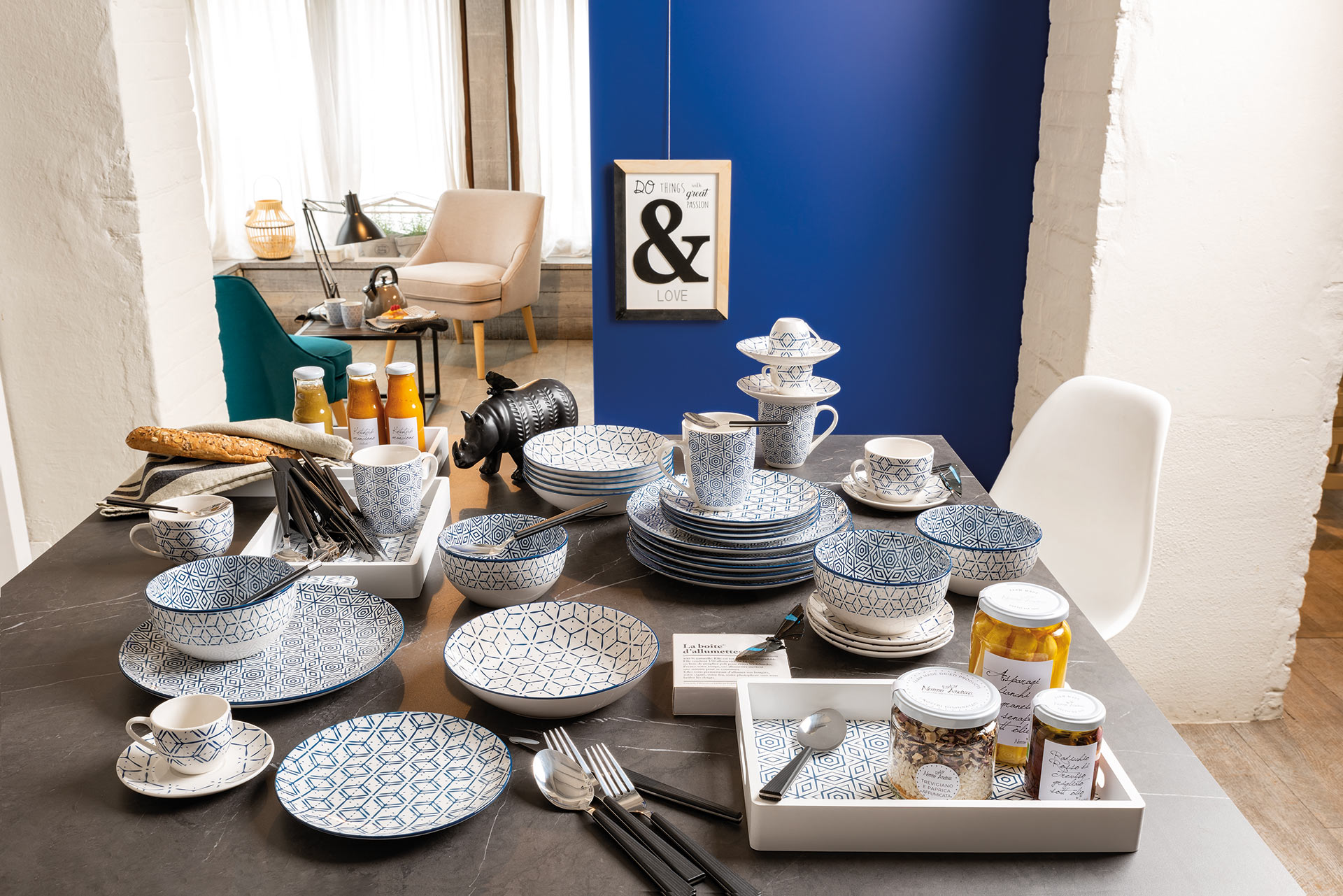 The Down Town line mug is crafted from fine porcelain and finished with an original blue geometric motif, making it perfect for recreating a modern metropolitan feel on your table. It can be used for breakfast, for serving appetizers, salads, first courses, and can also be combined with other accessories of the same line.