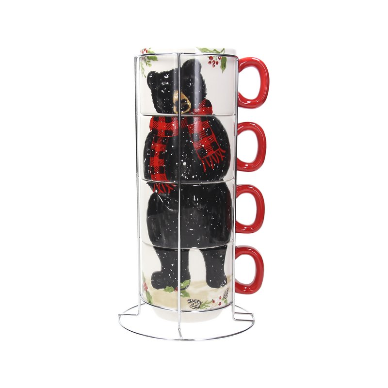 The bear pattern cup set has an attractive design. A stainless steel rack is included to enhance the design to keep mugs organized and presentable for everyday use.