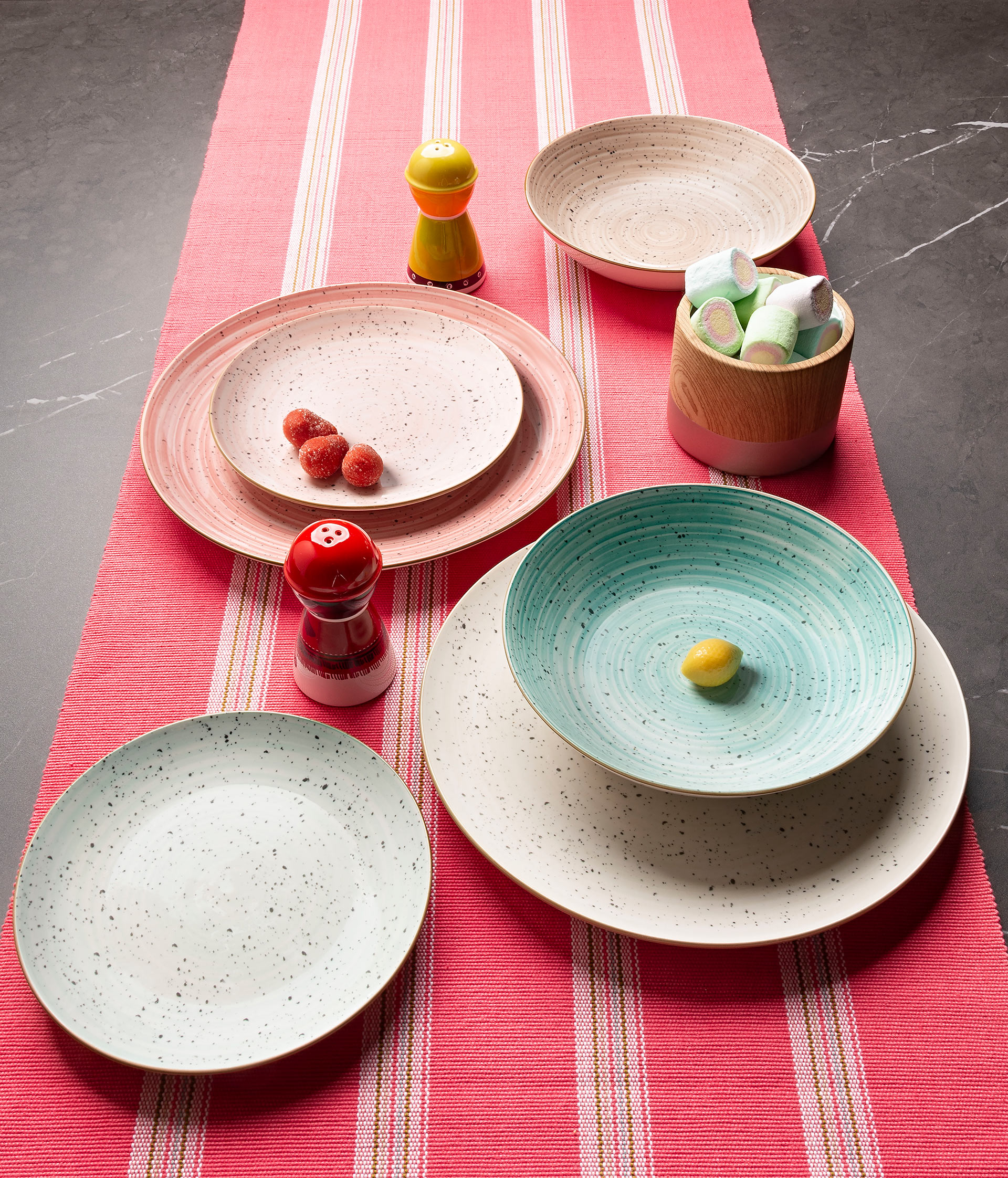 Table service for 6 persons from the Pepper Bamboo line. Products included in the set are made in different colors. This allows you to brightly and unusually arrange the table setting.