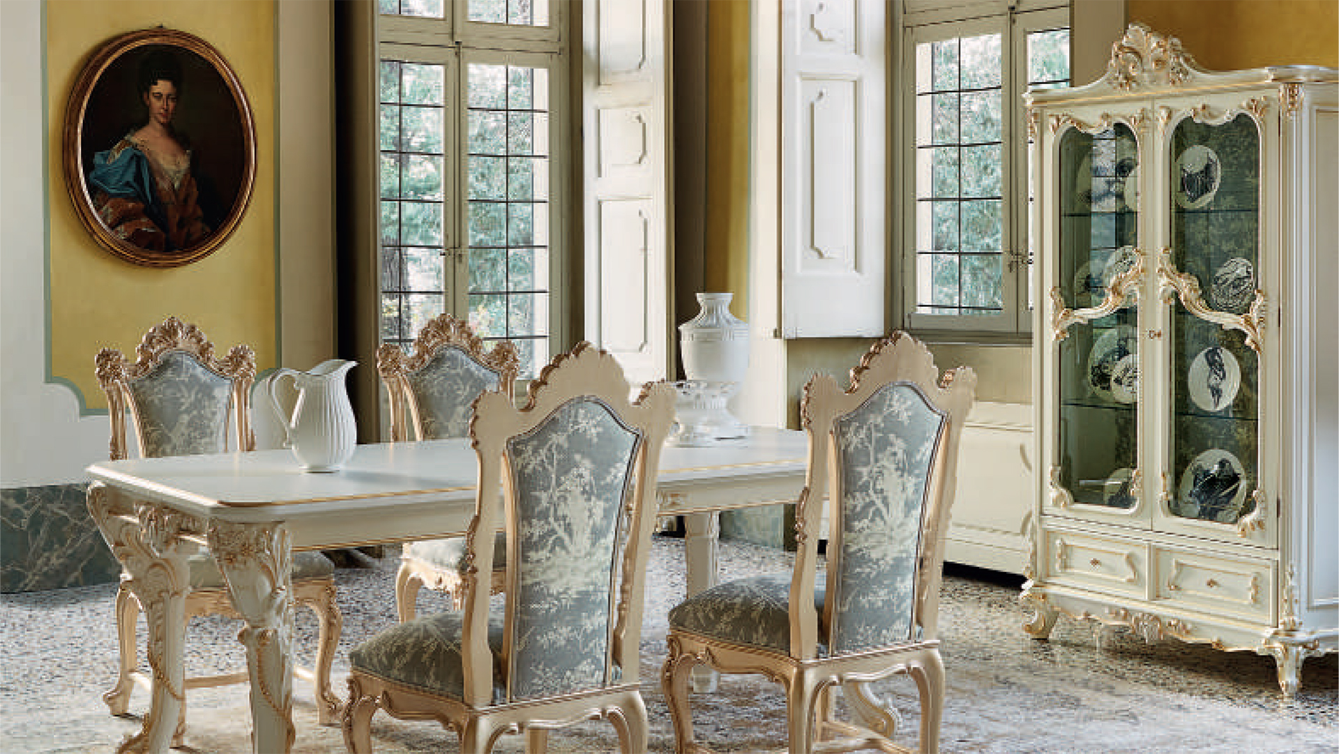 The Alexandra living room is presented in the Baroque style, it will perfectly suit the decor of respectable interiors. The luxurious decoration of the set is achieved through a carefully thought-out design, concise curly shapes, a wealth of finishing materials and masterly execution of every detail. The furniture is made of expensive wood species, covered with white water-based lacquer. Skillful carved decor, hand-painted, gilded handles - all this makes the set pompous. Filler polyurethane foam. Available in different finishes.