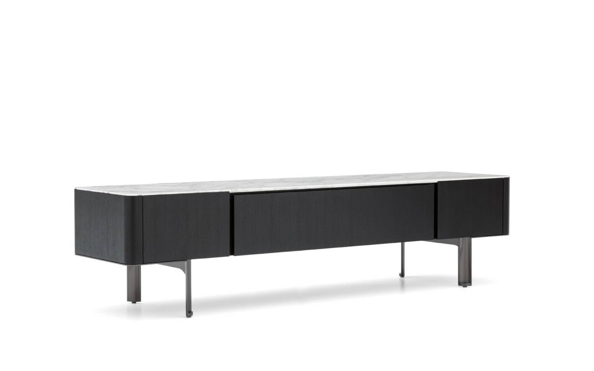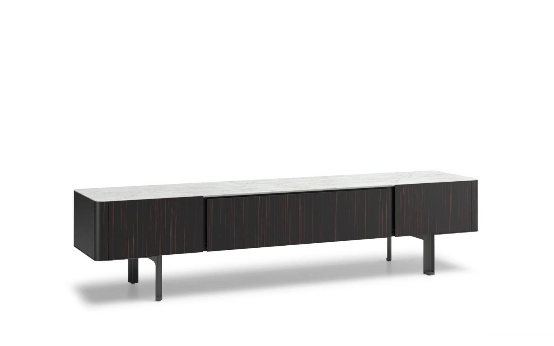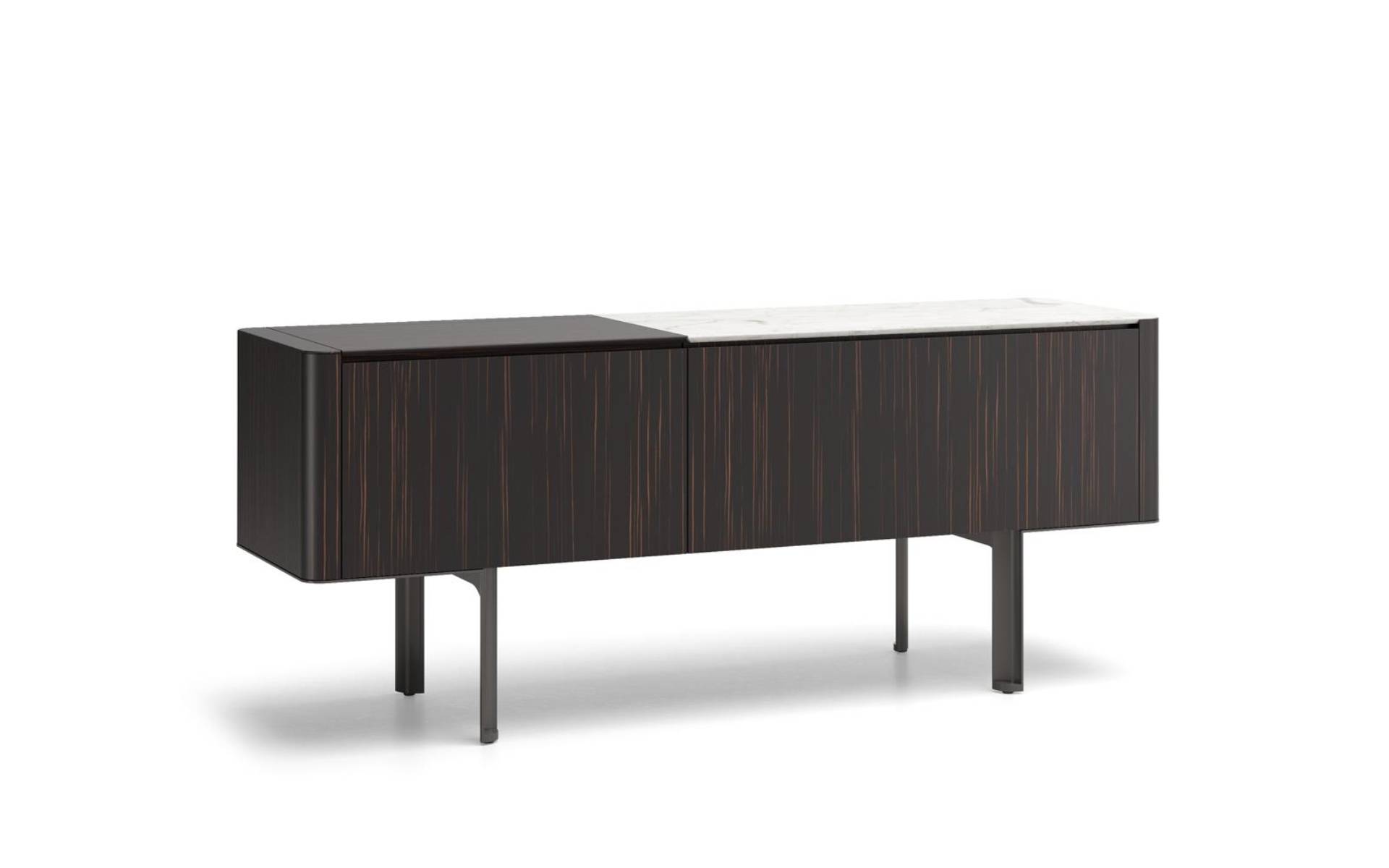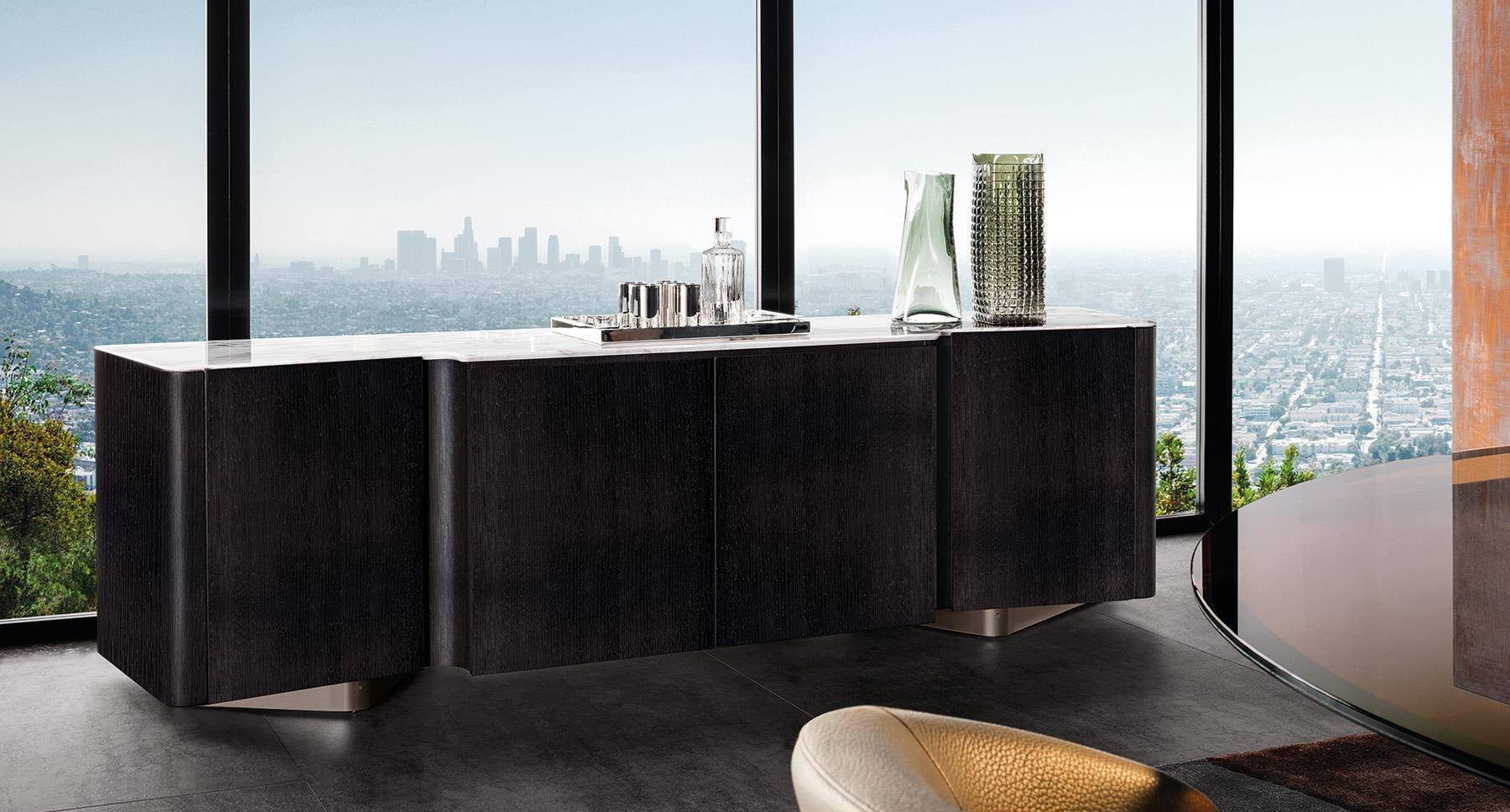 Synonym of refined cabinet-making and high-end technology, they have in common the preciousness of the materials, from the brushed ash or the opaque ebony of the structure to the Calacatta marble or the flush-fitted tops in wood matching the colour of the structure, to the glossy painted metal base.