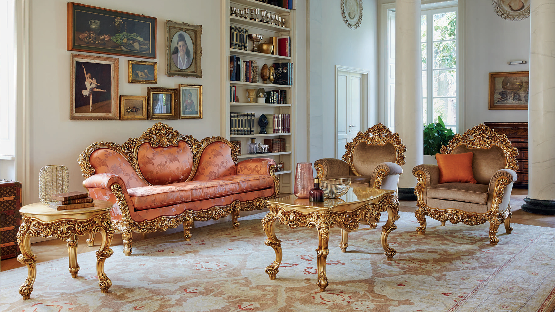 Rectangular coffee table. Wooden tabletop with glass top. Decor - polyurethane foam. Other finishes are possible.